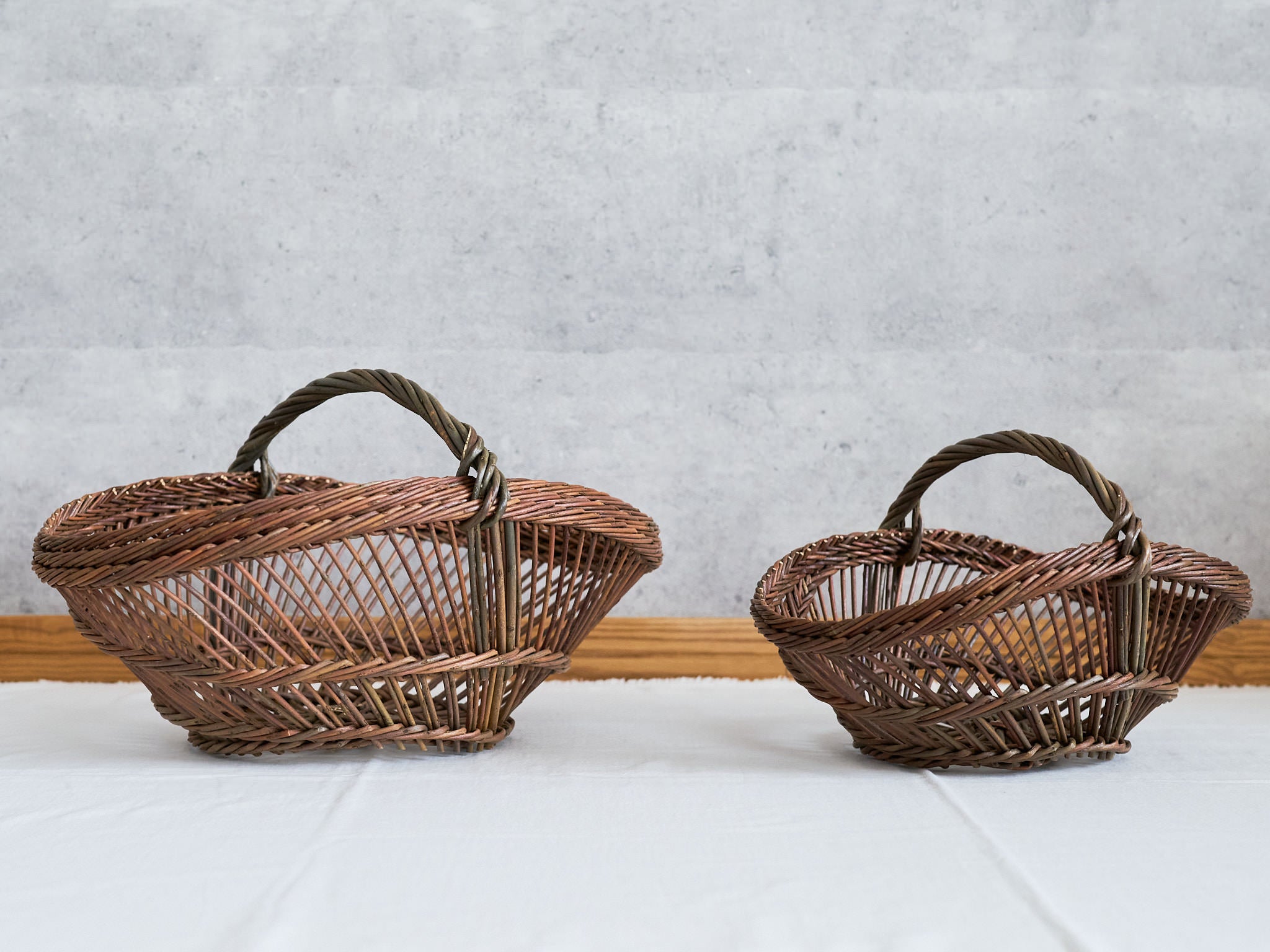 商品説明にあった、高齢の籠職人さんが作り続けられている物、という事に惹かれて購入しました。友人達に贈りたかったので複数購入しましたが、つやのあるヤナギがきっちり同じ形に編まれていて、満足のいく品でした。形と大きさもイメージ通りでした。