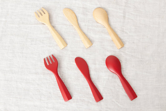 “Petit” Morning Fork, Knife, Spoon / [ Natural, Red ] / Mōsō bamboo / Ōita-JPN 211117