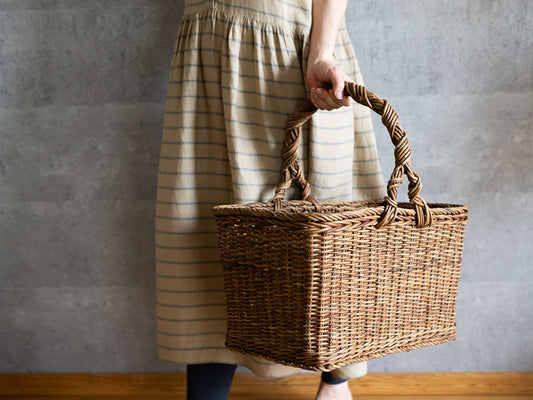 タイ/コック(すげ) キャリーバスケット 三つ編み入り 籐ハンドル 小・大 2サイズ 3115423
