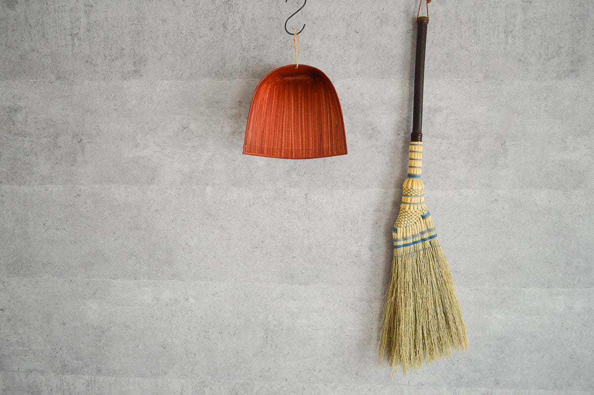 リビングなど、よく箒を使う場所に、あえて、ちりとりとともに掛けておくのも良いのではないかと思います。