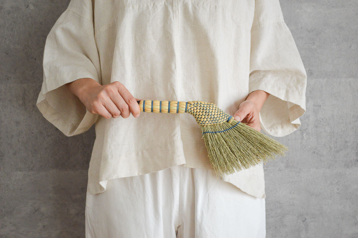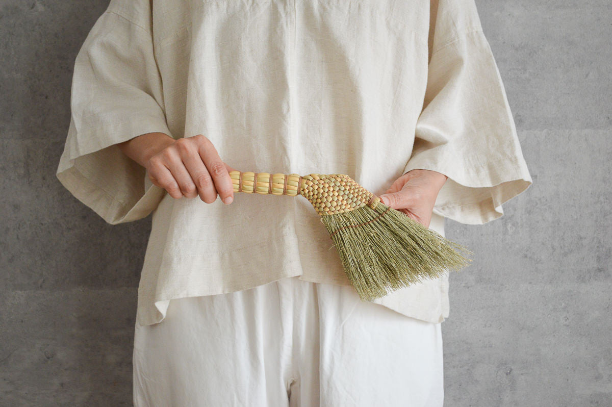 こちらは、茶道でも使われる、鳥の羽根を束ねて作られた「羽箒」から着想を得て生まれた小箒です。
