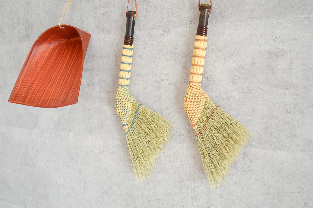 リビングなど、よく箒を使う場所に、あえて、ちりとりとともに掛けておくのも良いのではないかと思います。