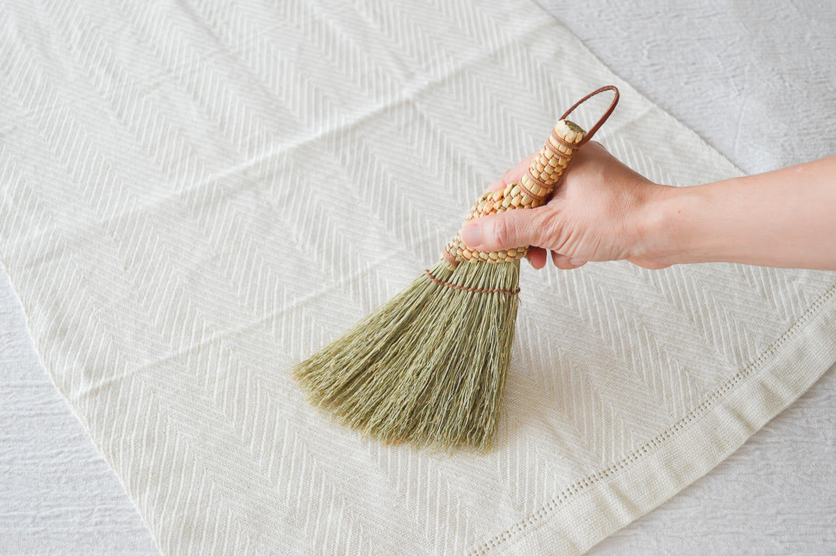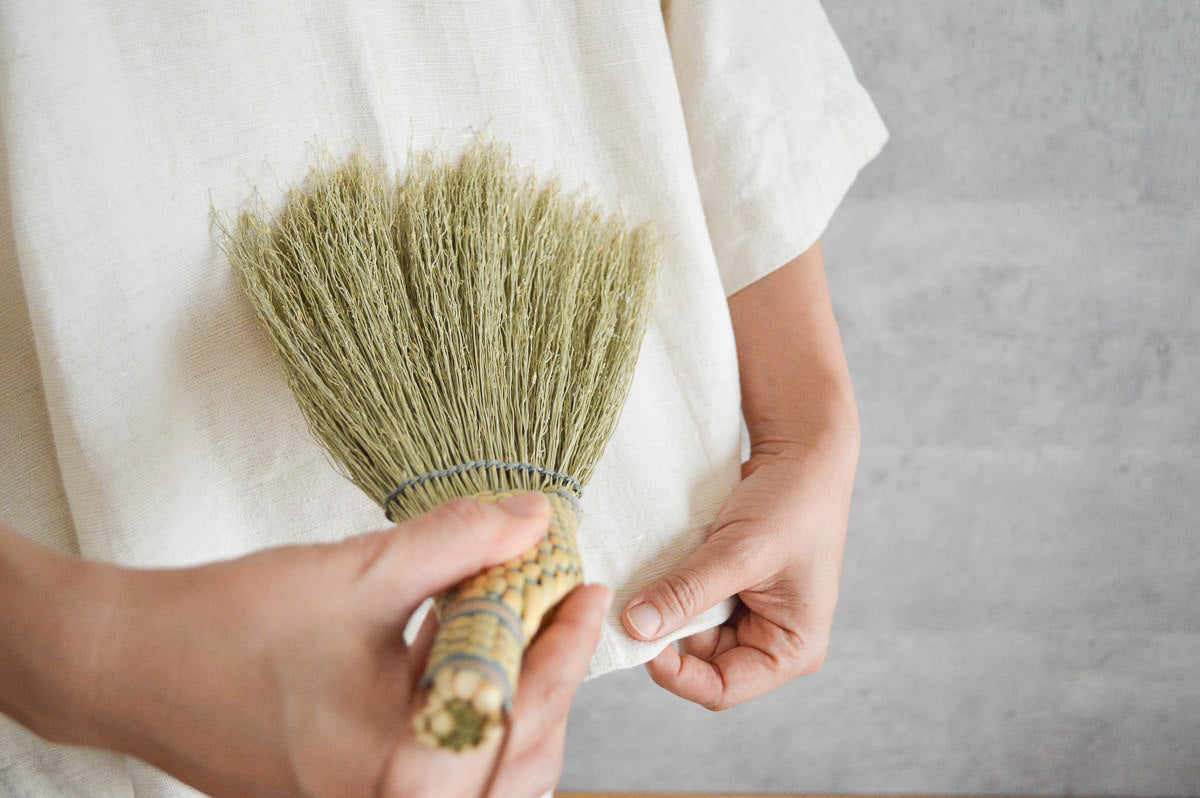 写真は「こぶり手箒」で、少し大きめの穂先ですが、撫でるとよいのはこちらの小箒も同じです。