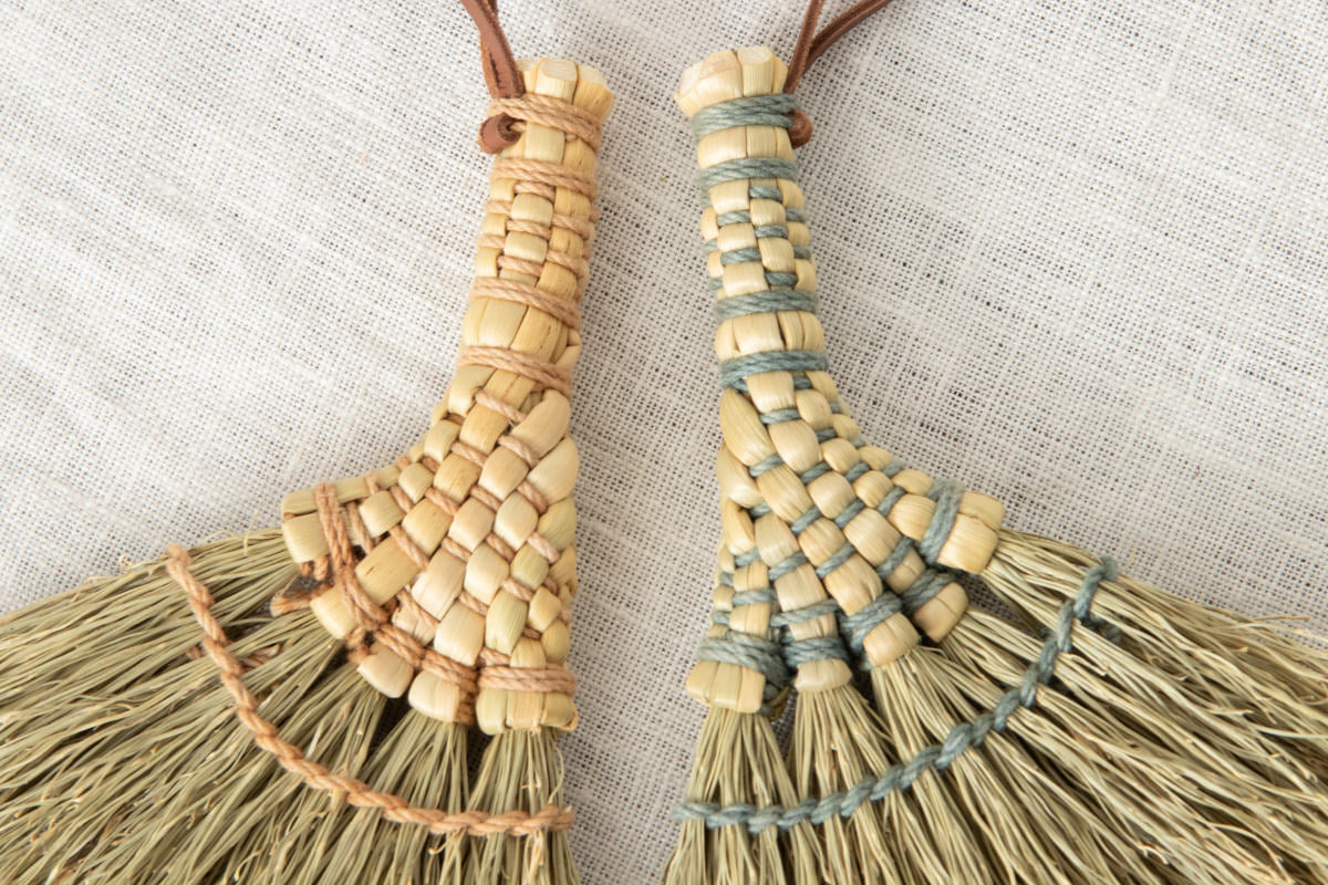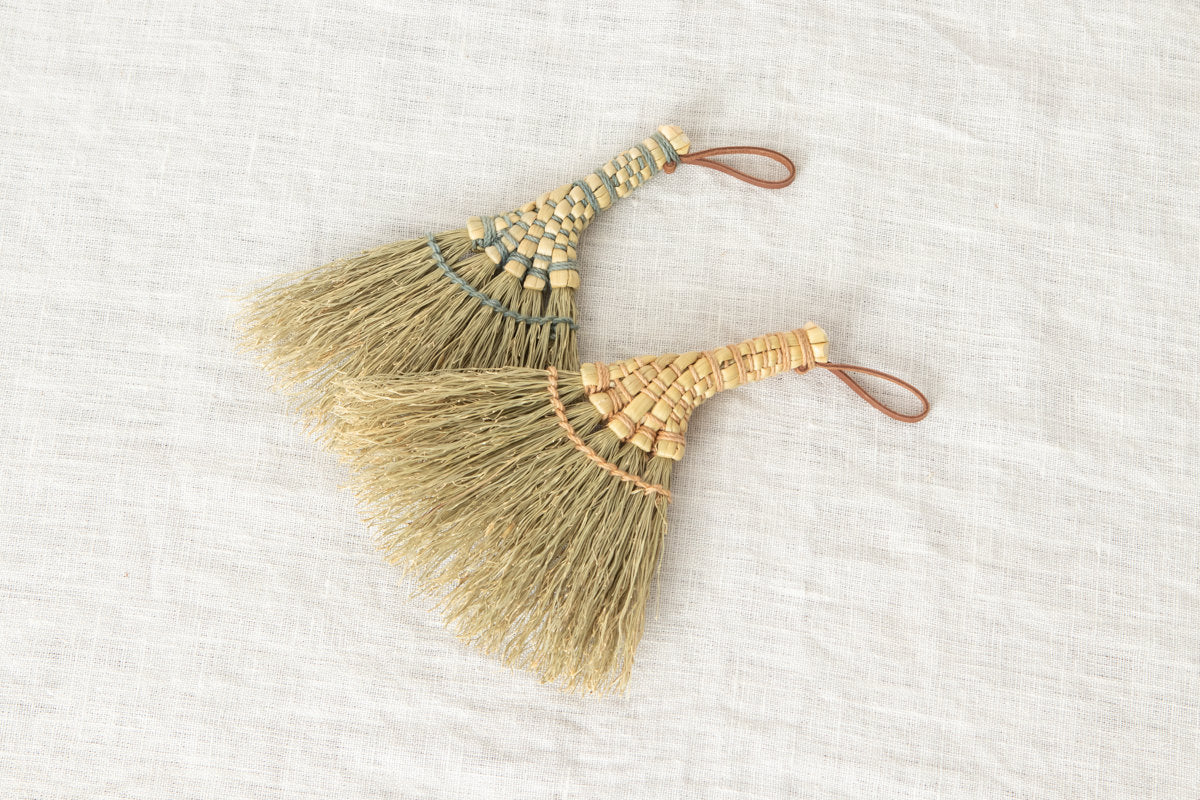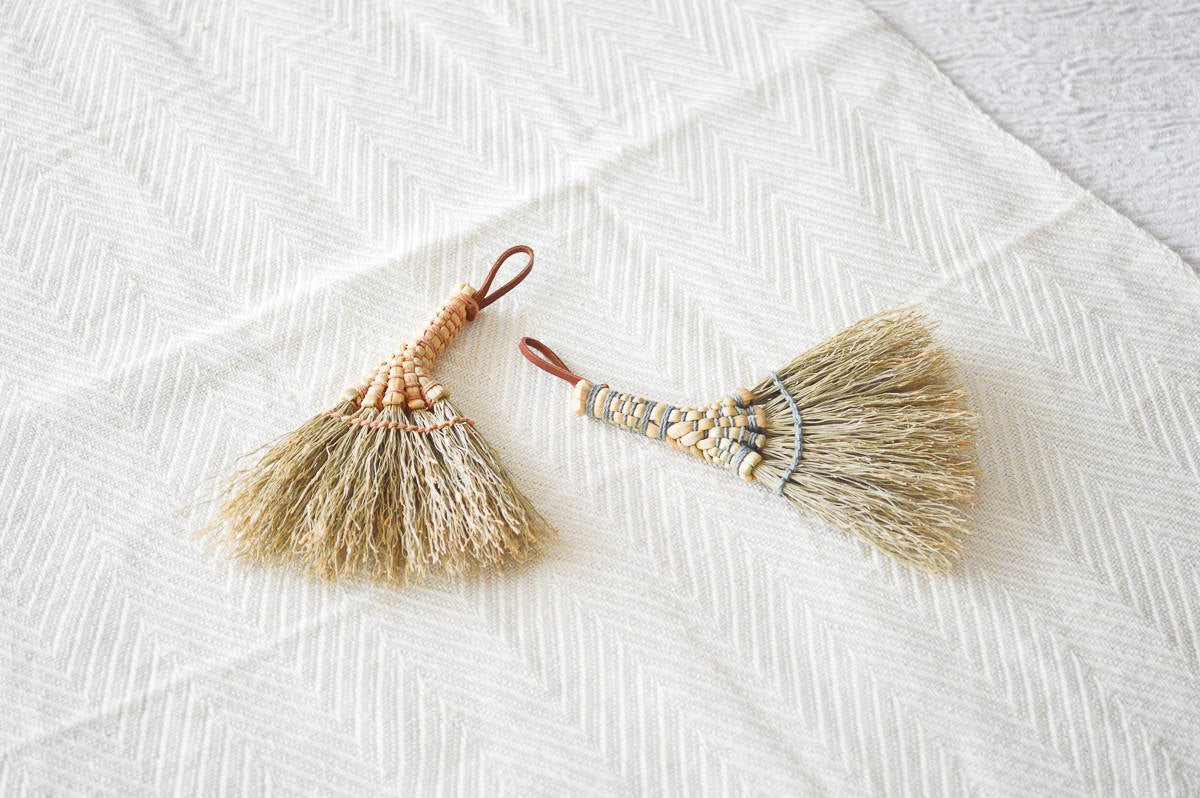こちらはホウキモロコシで作られた、銀杏の葉の形をした小さな箒です。