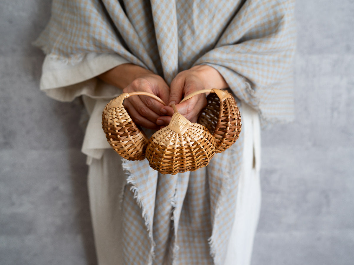 自然素材を使った手作り品のため、表記サイズから2-3cm前後するものもございます。