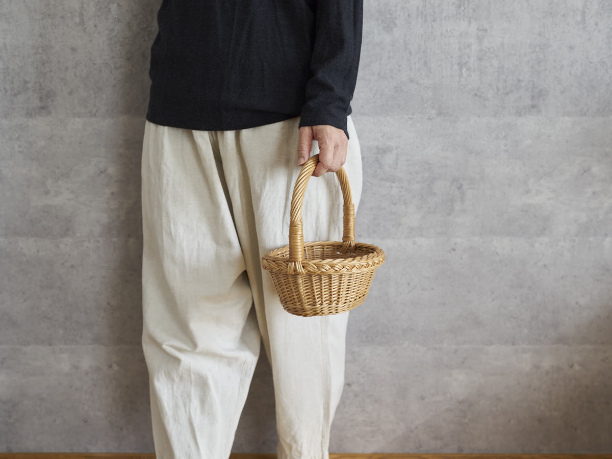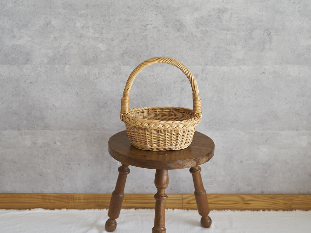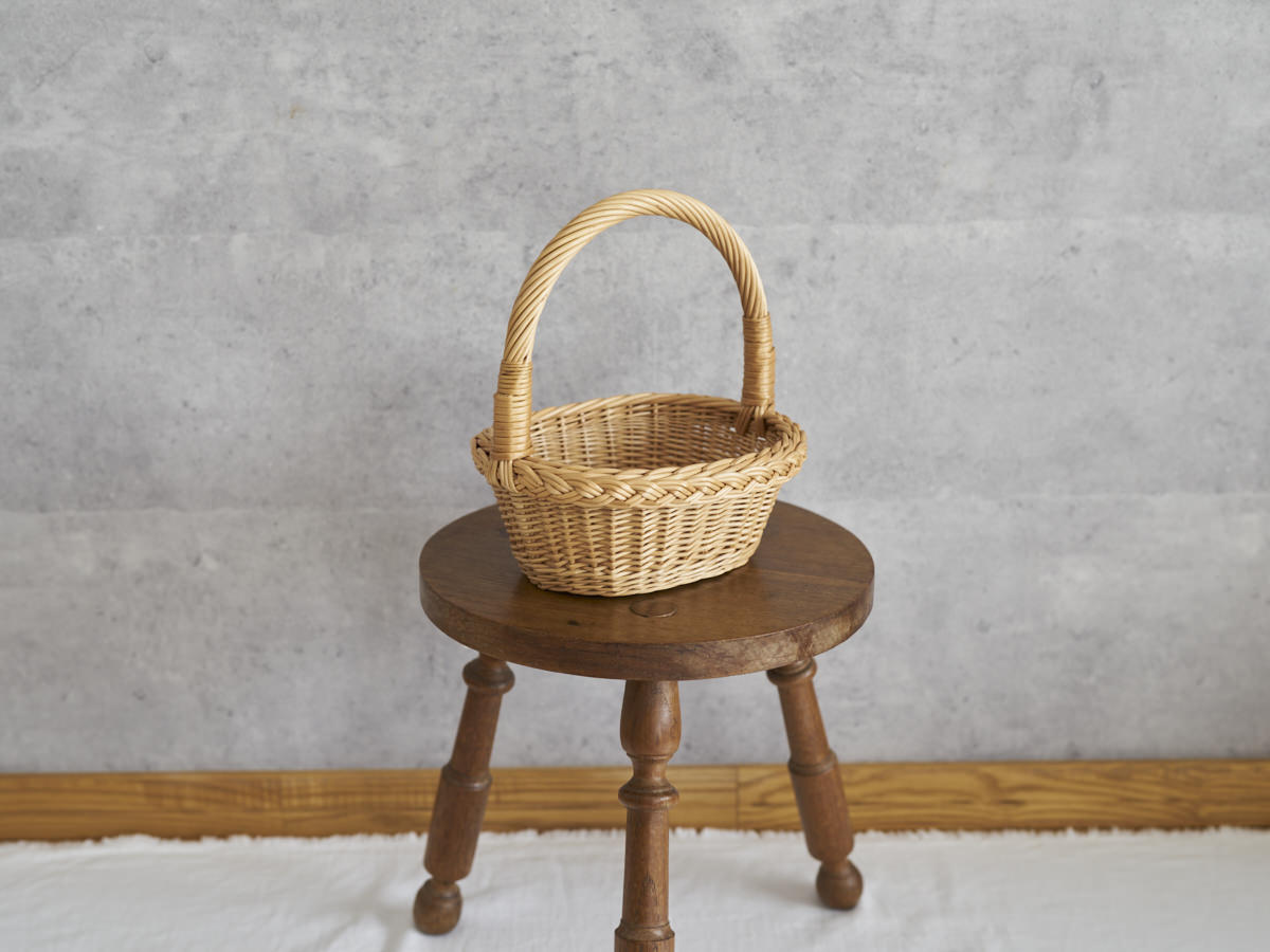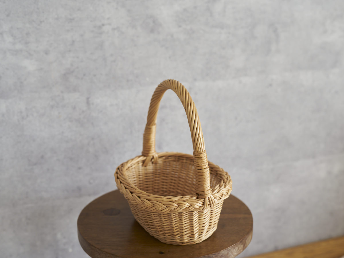 こちらは、小ぶりで持ち手の長いバスケットです。