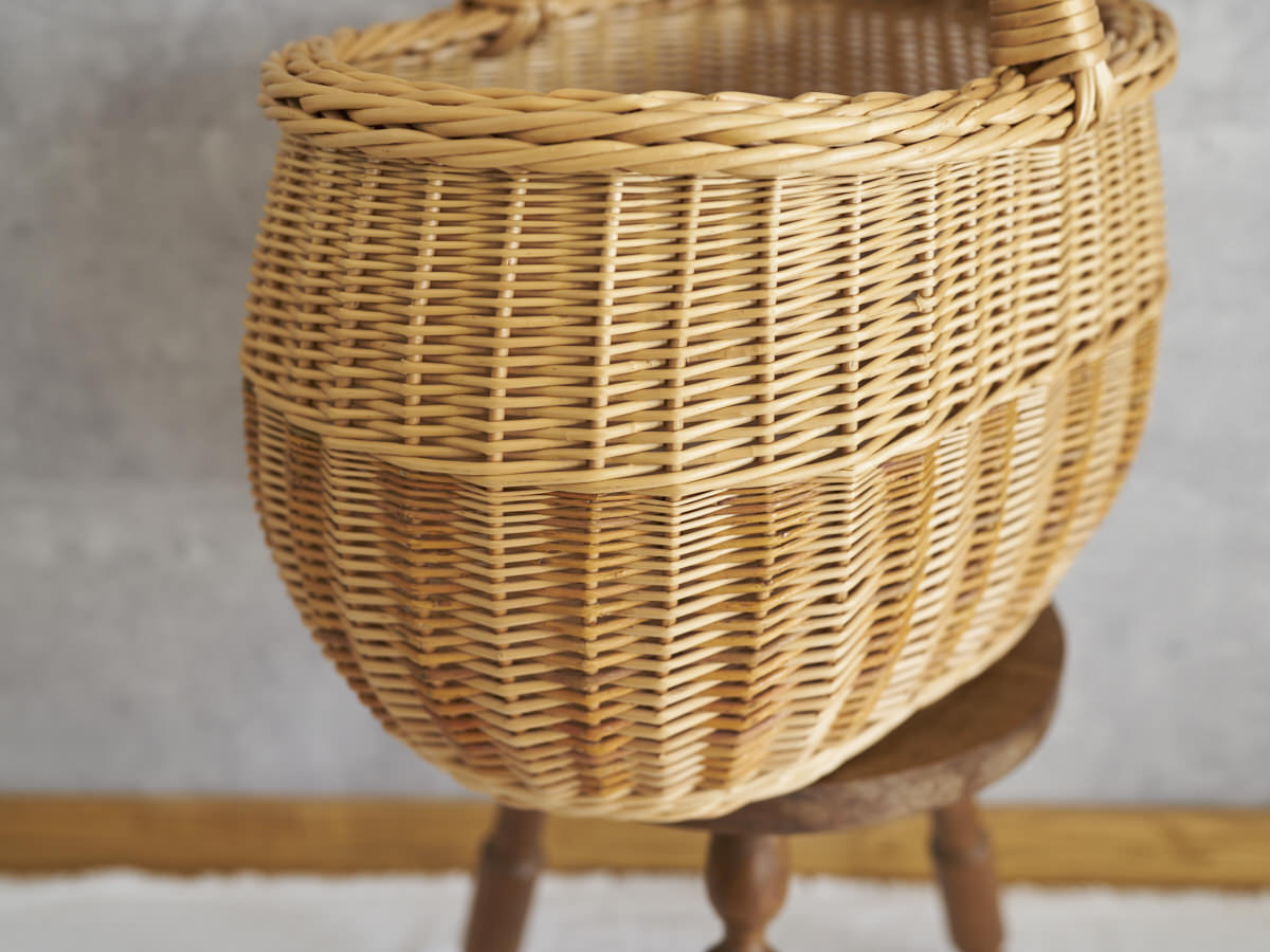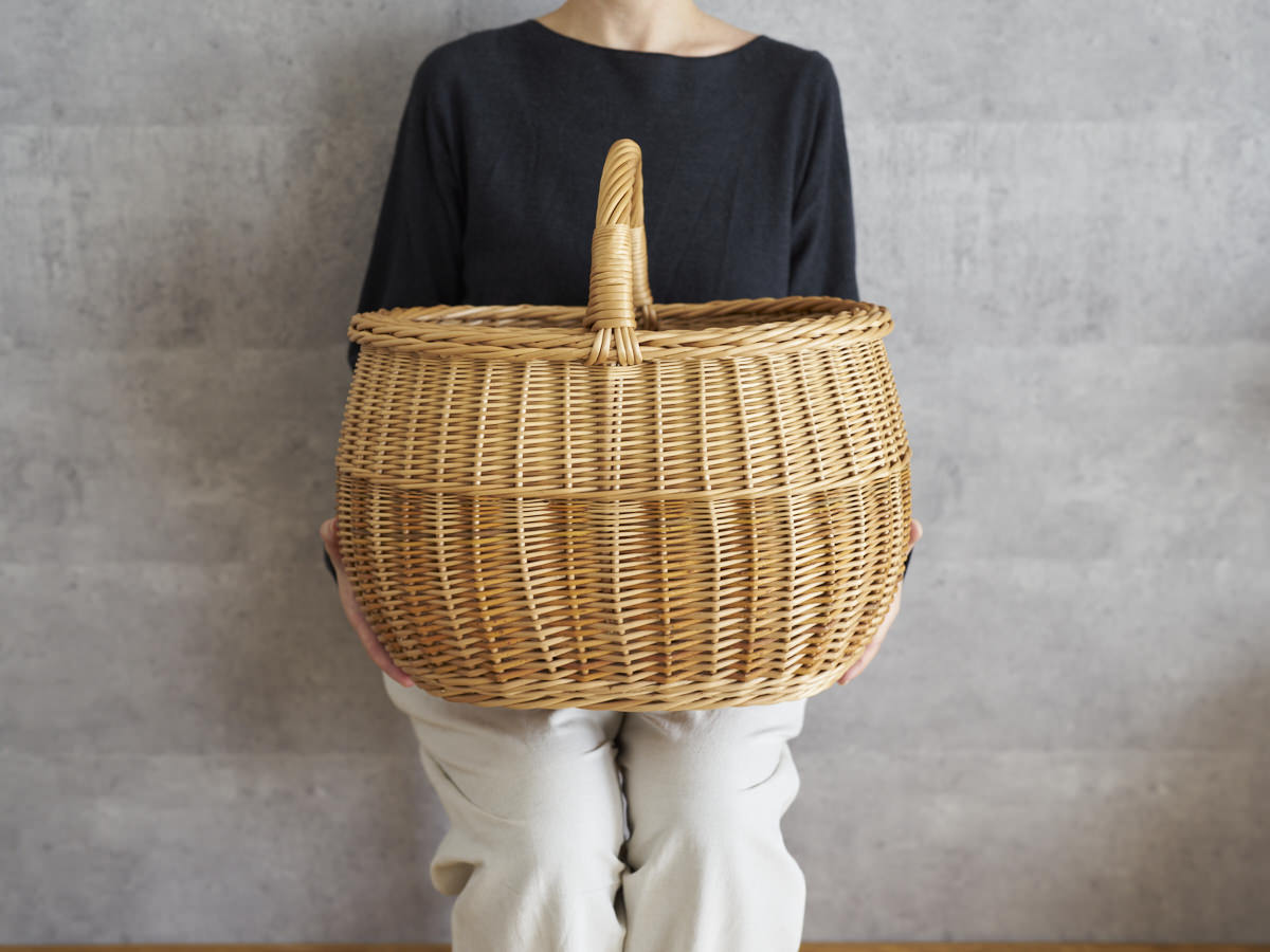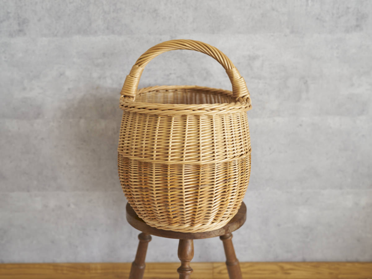こちらは、ふっくらとした曲線がうつくしい大ぶりなバスケットです。