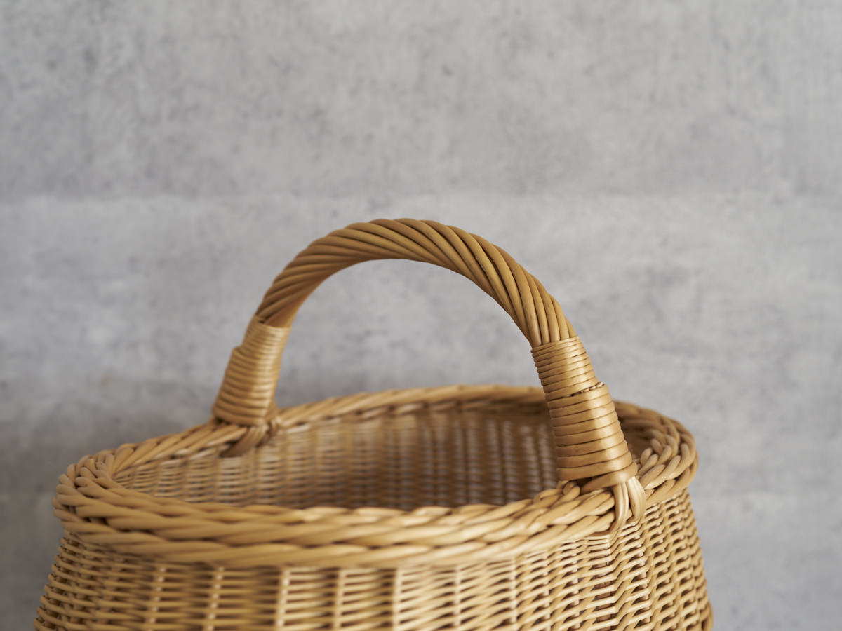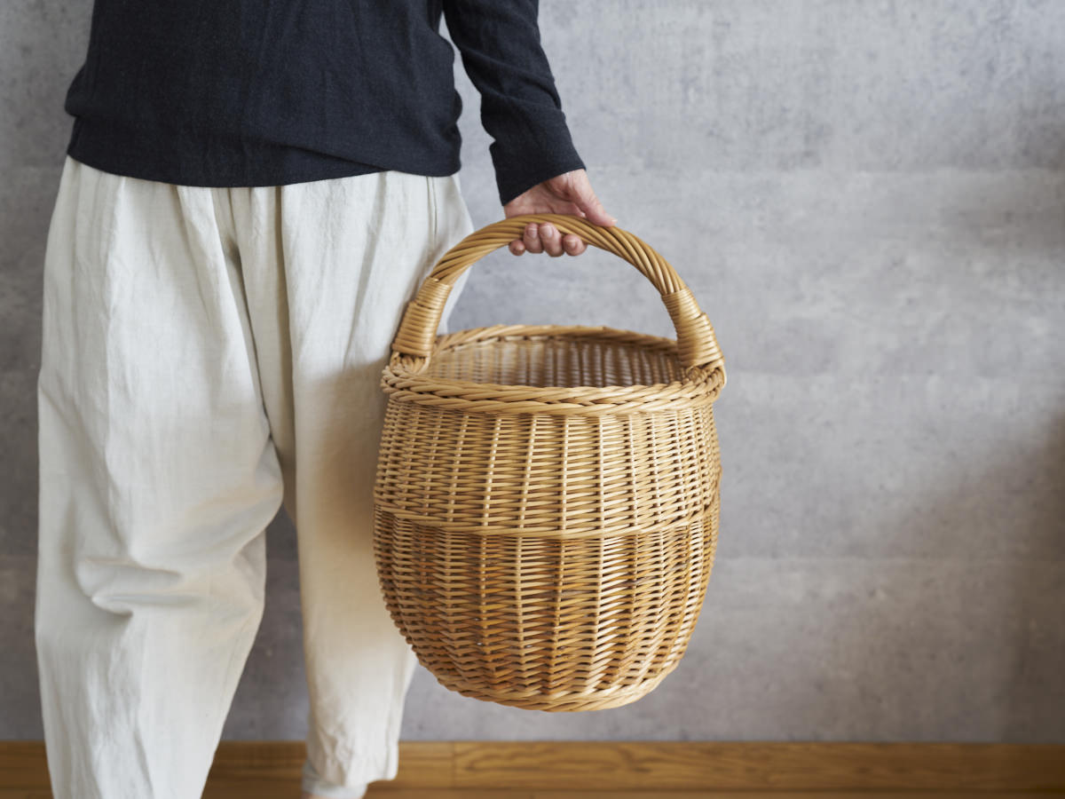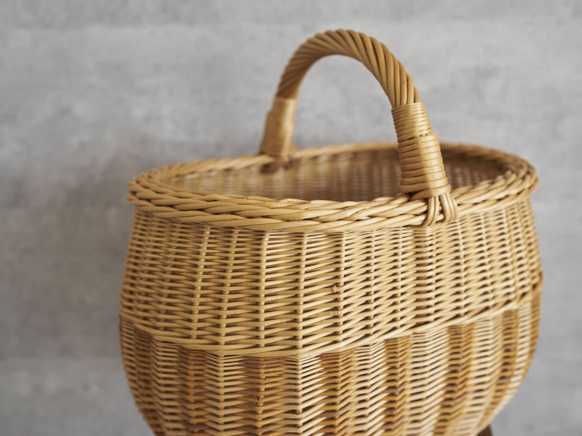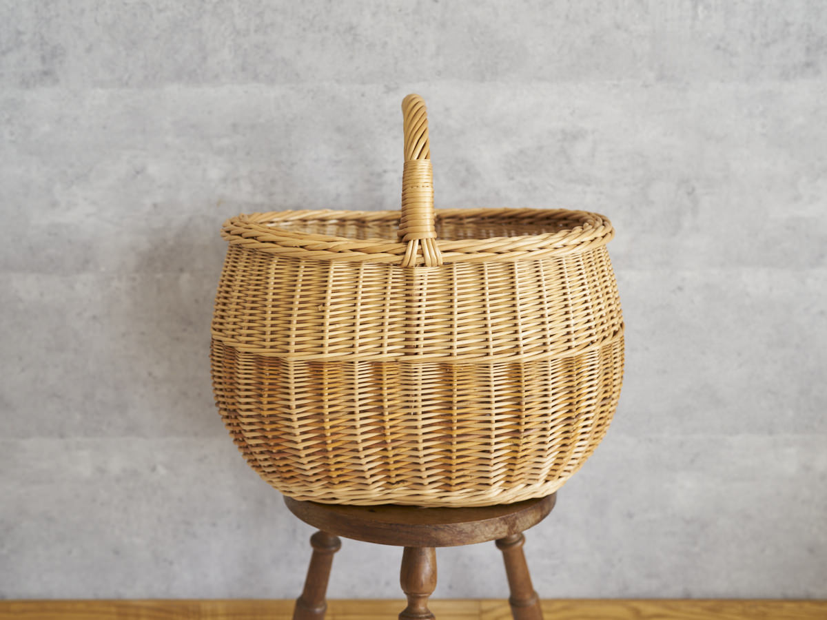 こちらは、ふっくらとした曲線がうつくしい大ぶりなバスケットです。