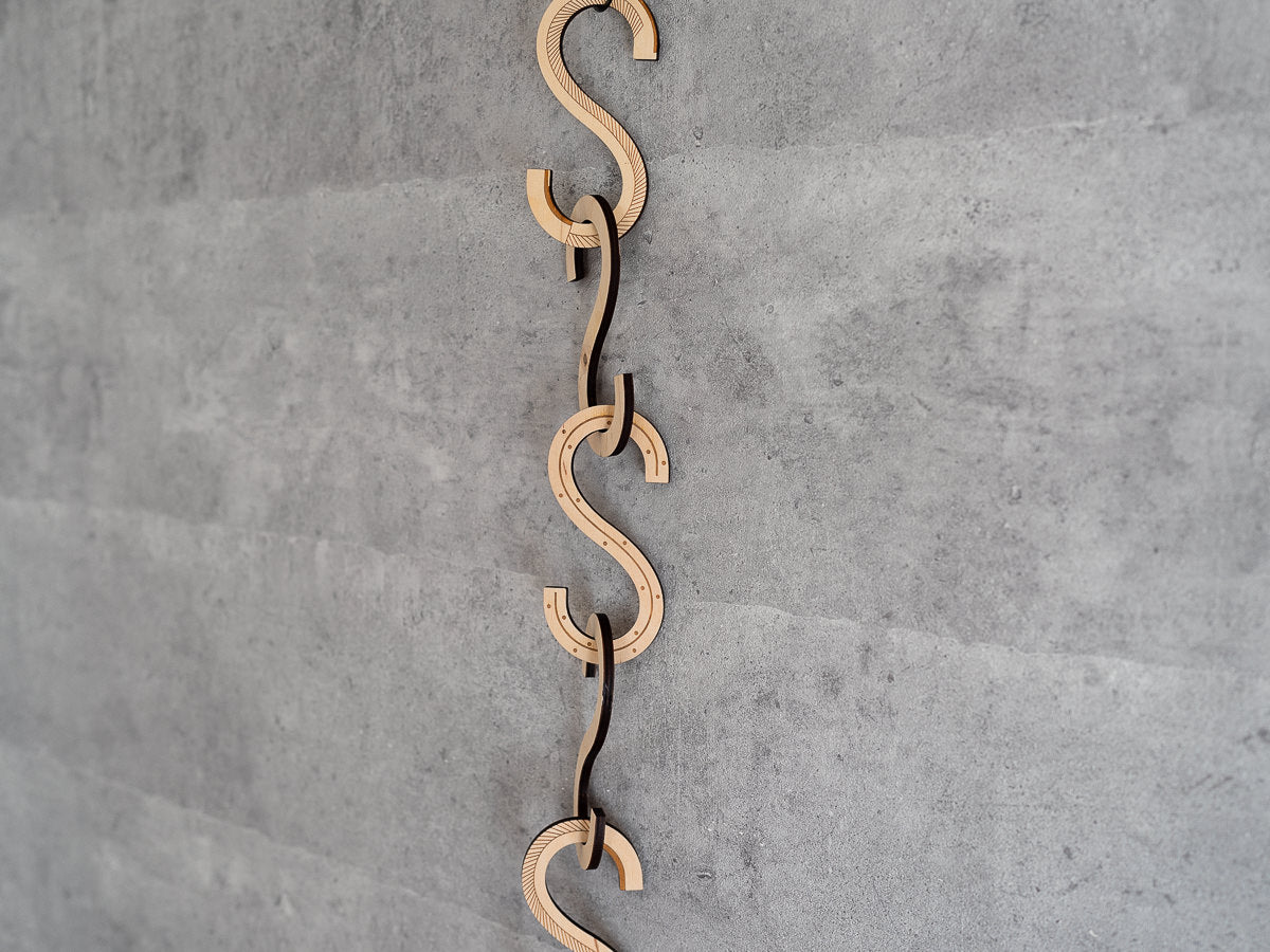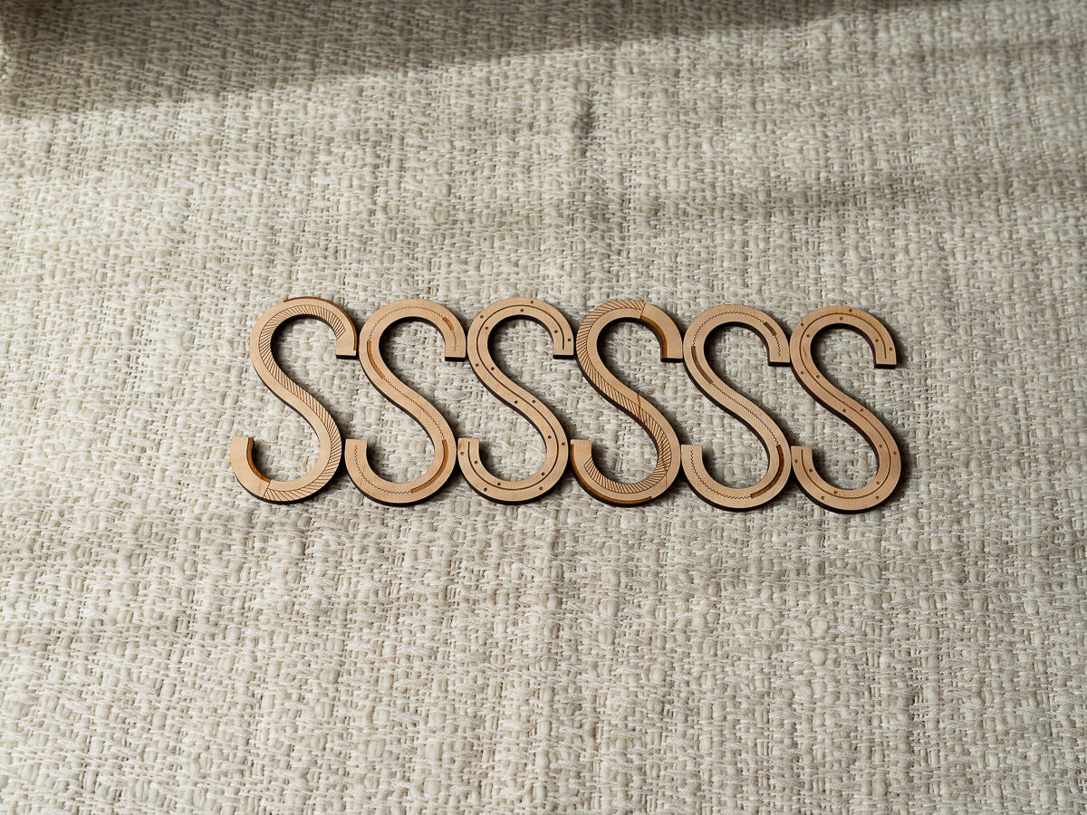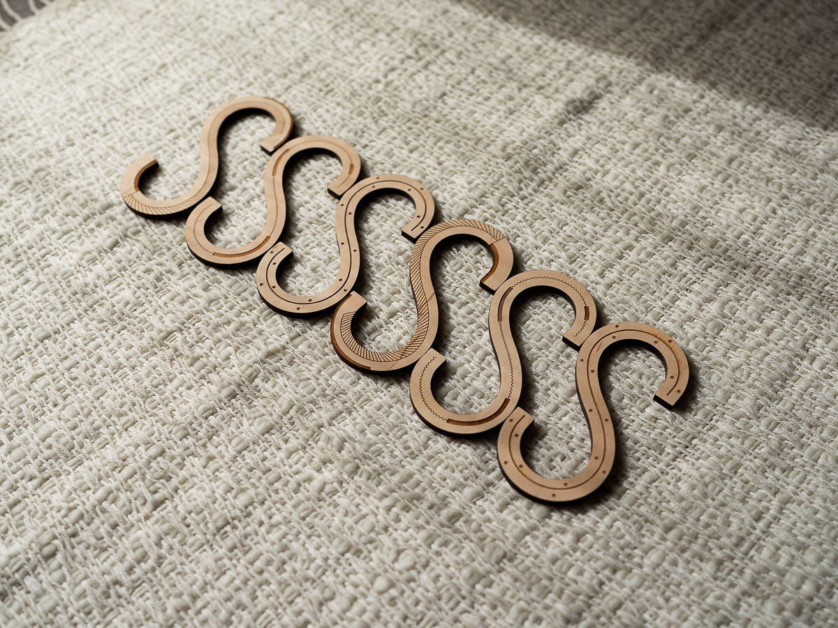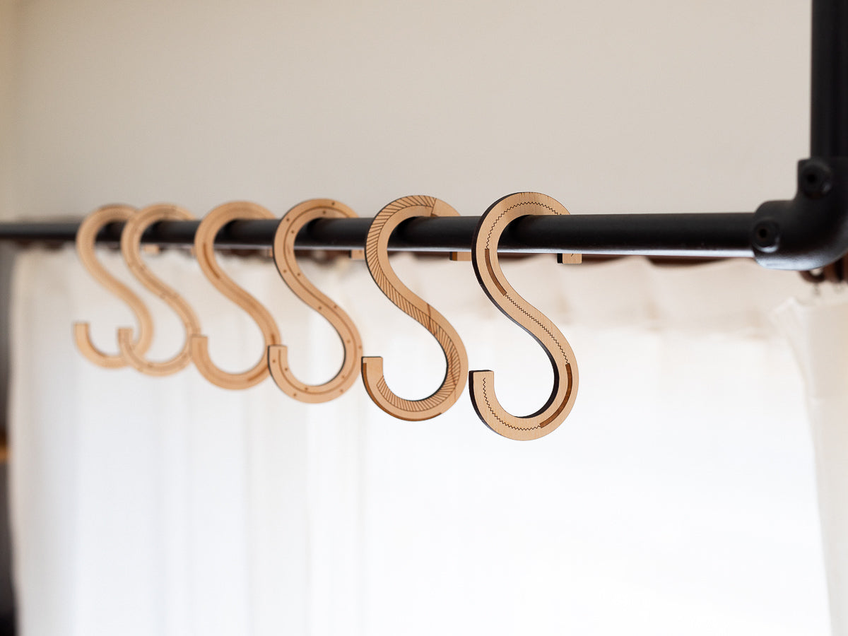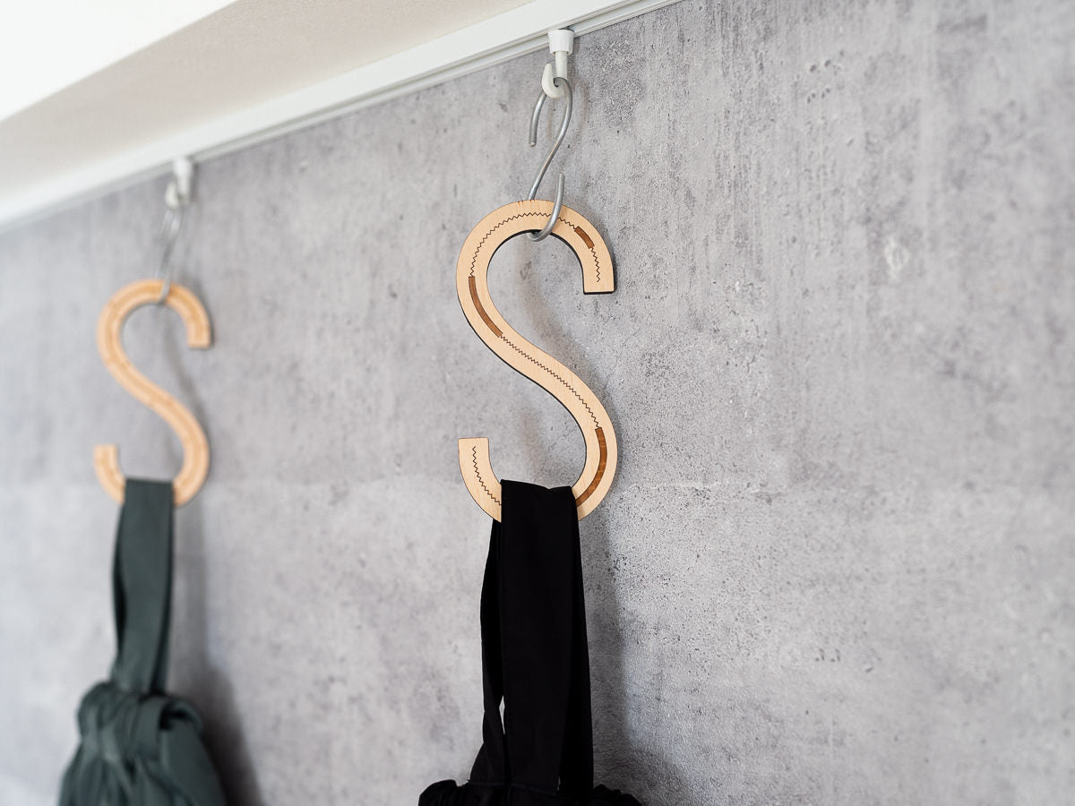 バーチの木という素材やデザインの加わった、唯一無二の、オリジナルS字フックです。