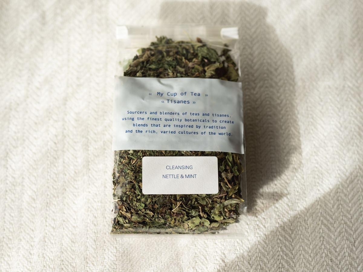 ワイルドミントとネトル(=イラクサ)のティザンヌブレンド。ネトルには、鉄分、ビタミンA・Eが豊富に含まれています。すっきりとした飲み心地で、食後の一杯としてもおすすめです。