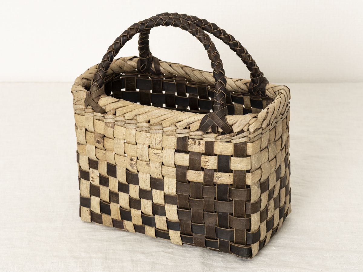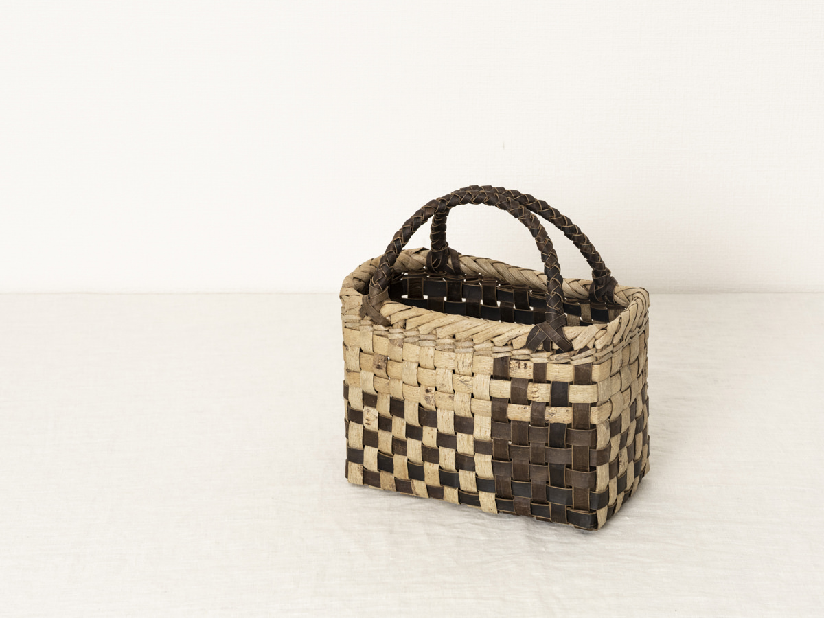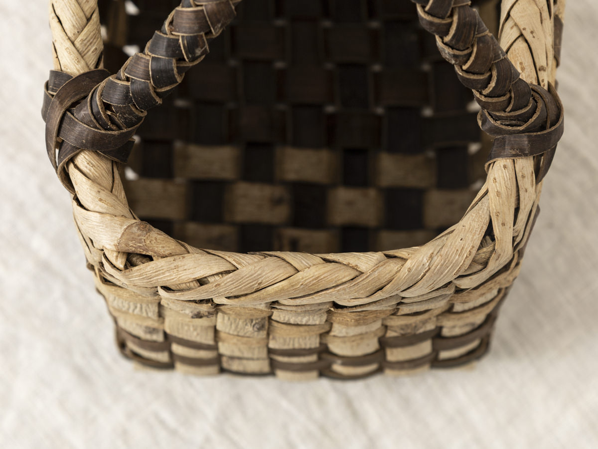 こちらは沢胡桃(さわぐるみ)の樹皮を使って編まれた手提げです。