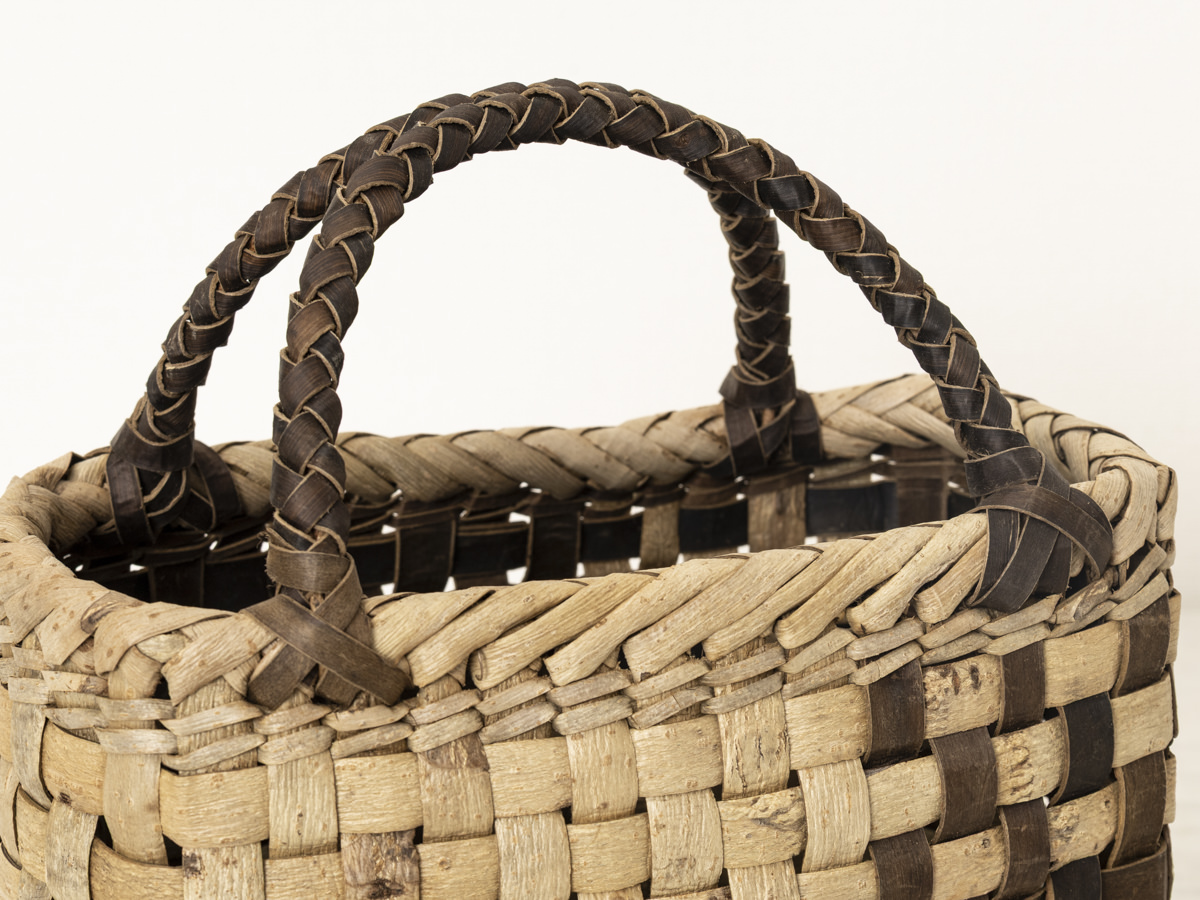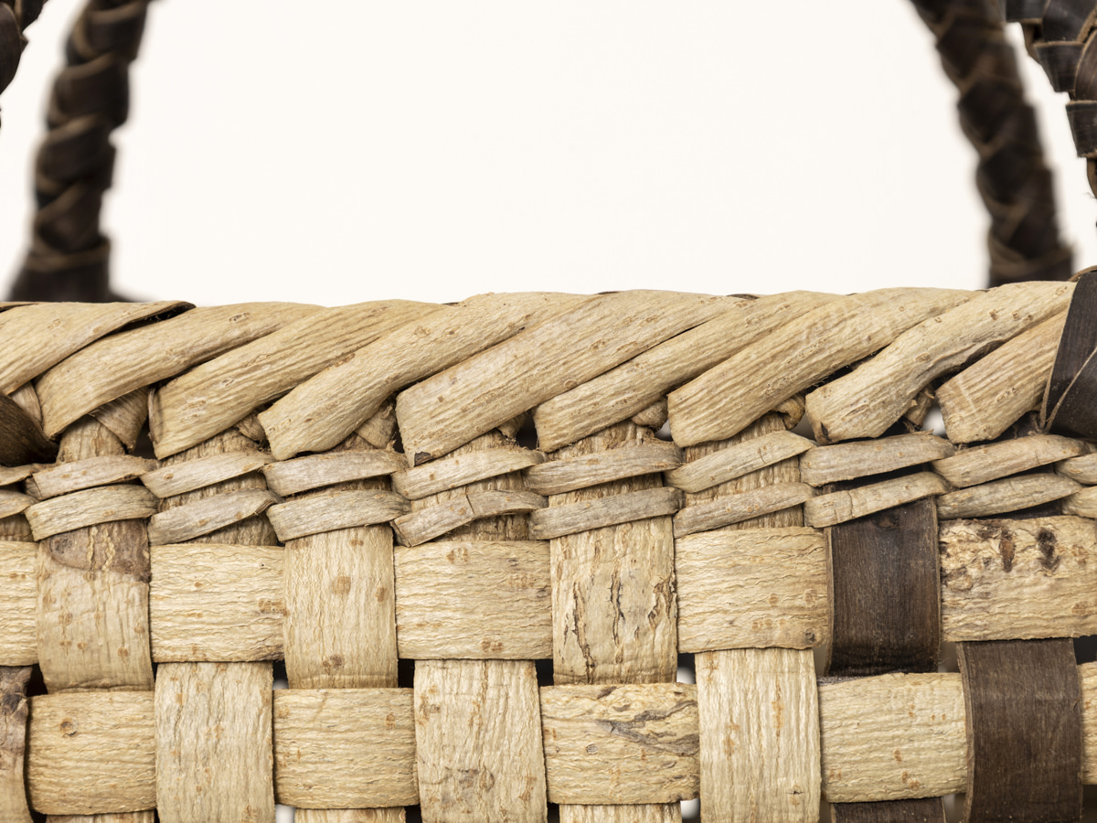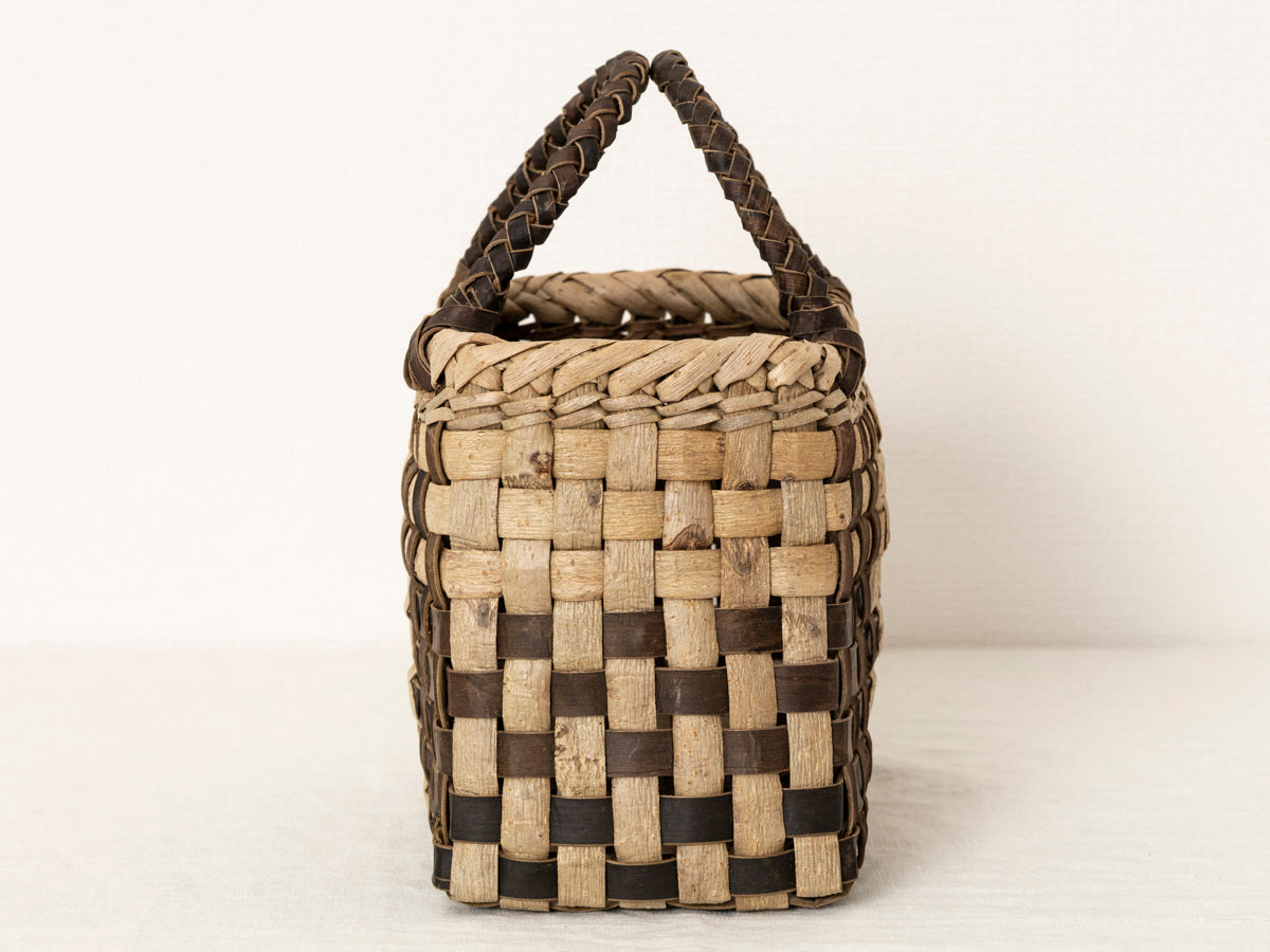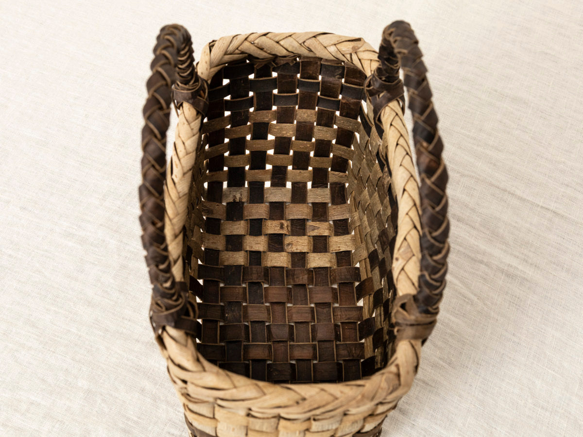 こちらは沢胡桃(さわぐるみ)の樹皮を使って編まれた手提げです。