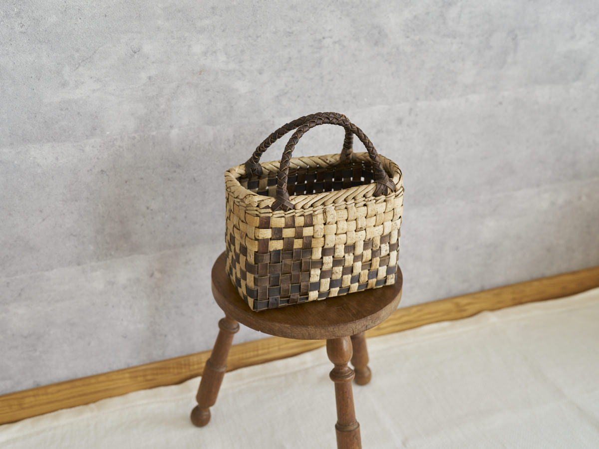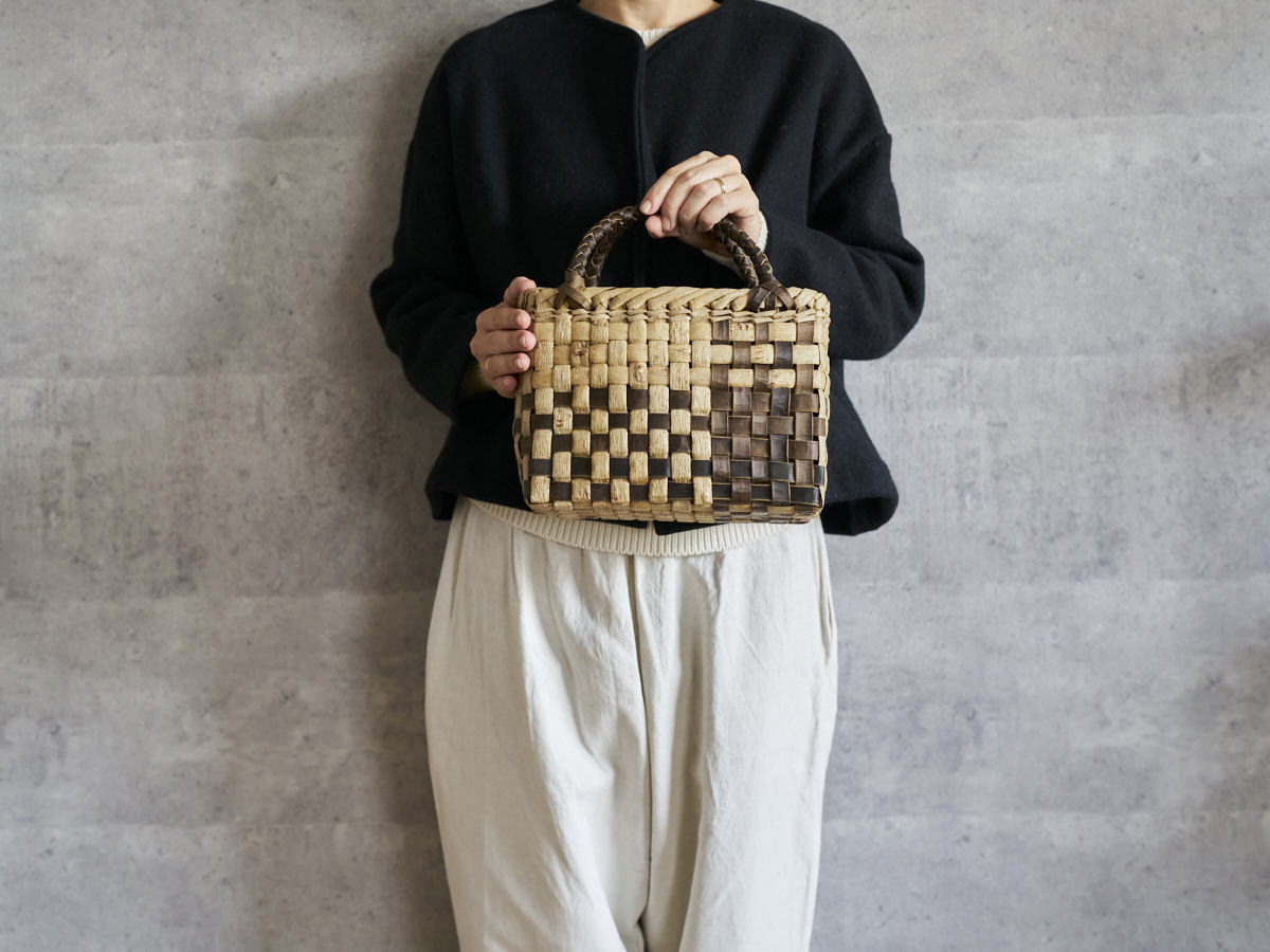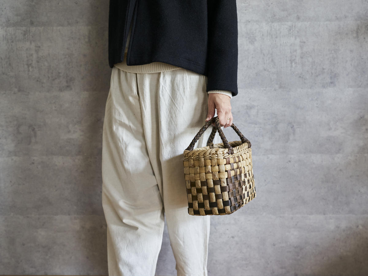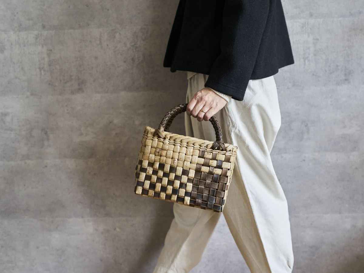 表皮と裏皮のコントラストのたのしさが光るかごバッグです。