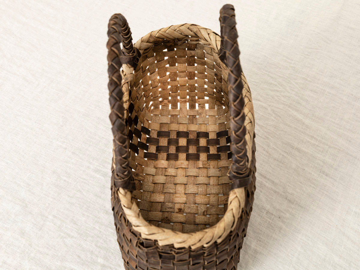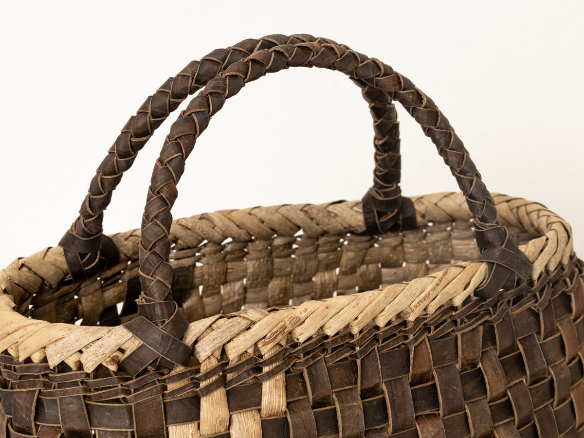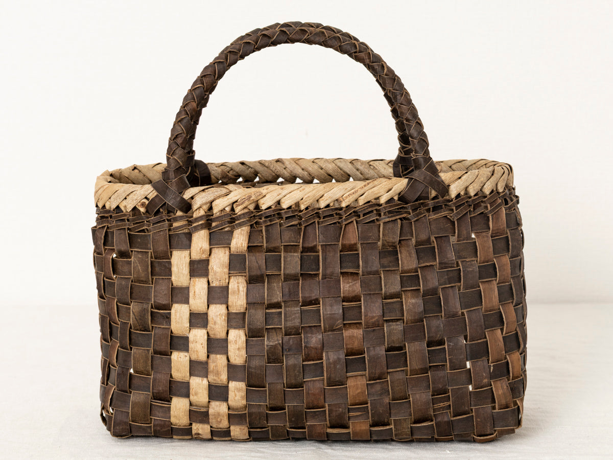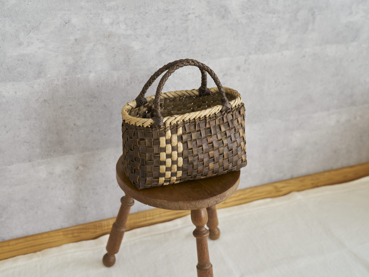 こちらは沢胡桃(さわぐるみ)の樹皮を使って編まれた手提げです。
