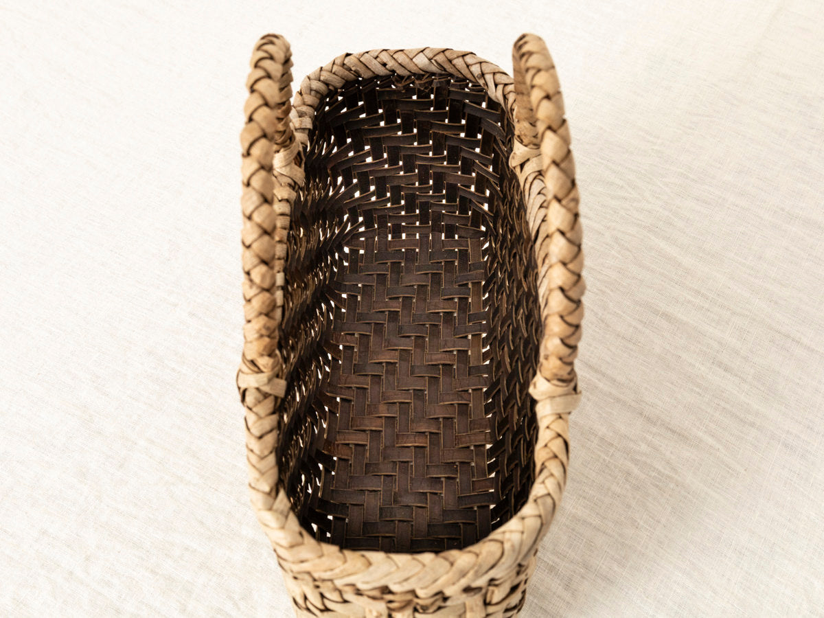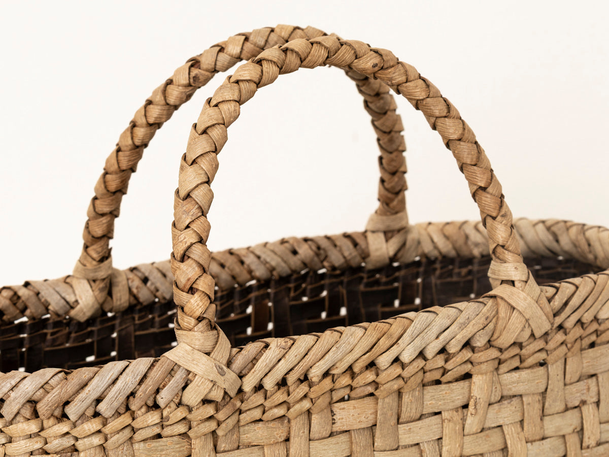 こちらは沢胡桃(さわぐるみ)の樹皮を使って編まれた手提げです。