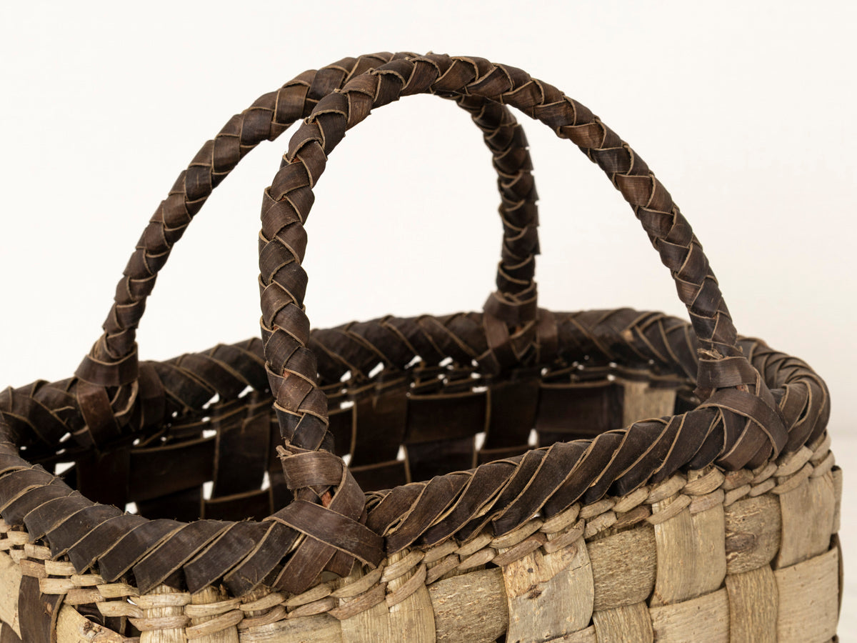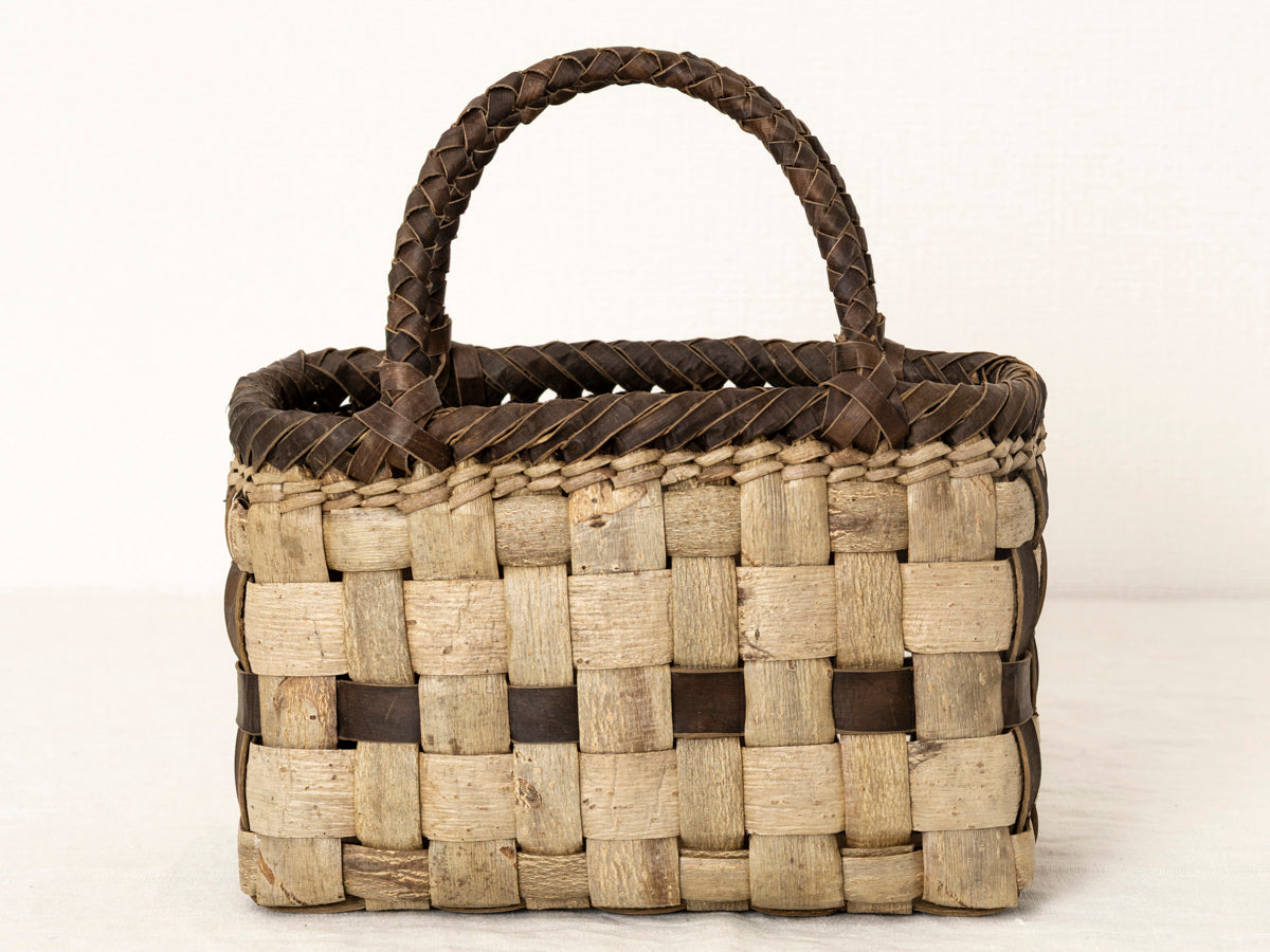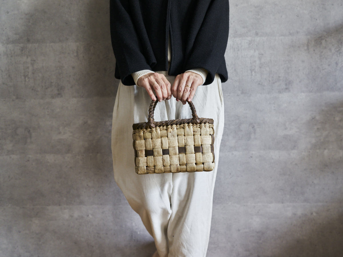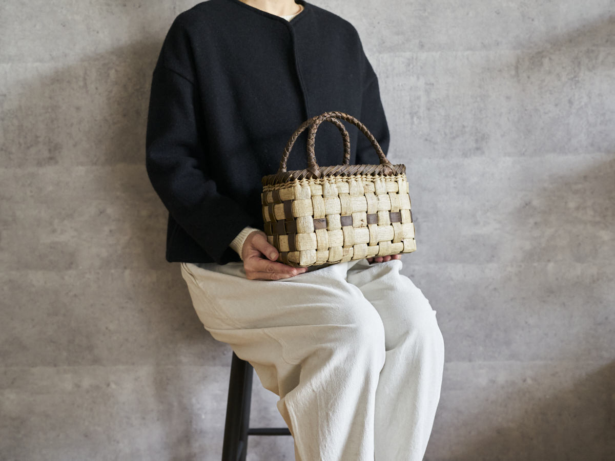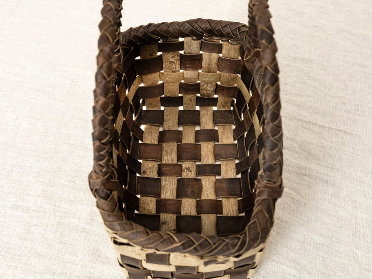 こちらは沢胡桃(さわぐるみ)の樹皮を使って編まれた手提げです。