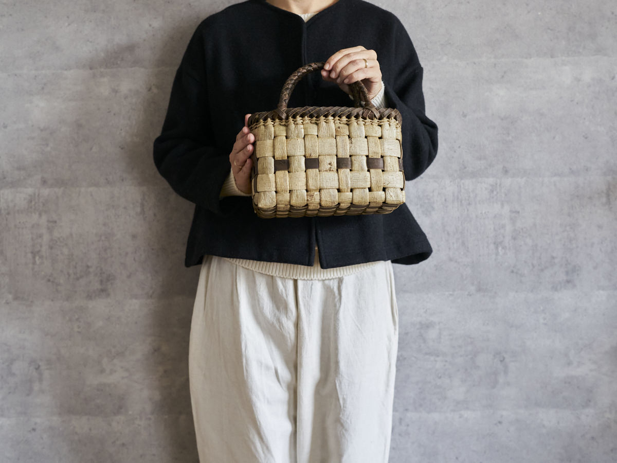 こちらでは、このくるみ樹皮を用いて作られた手提げをご紹介します。