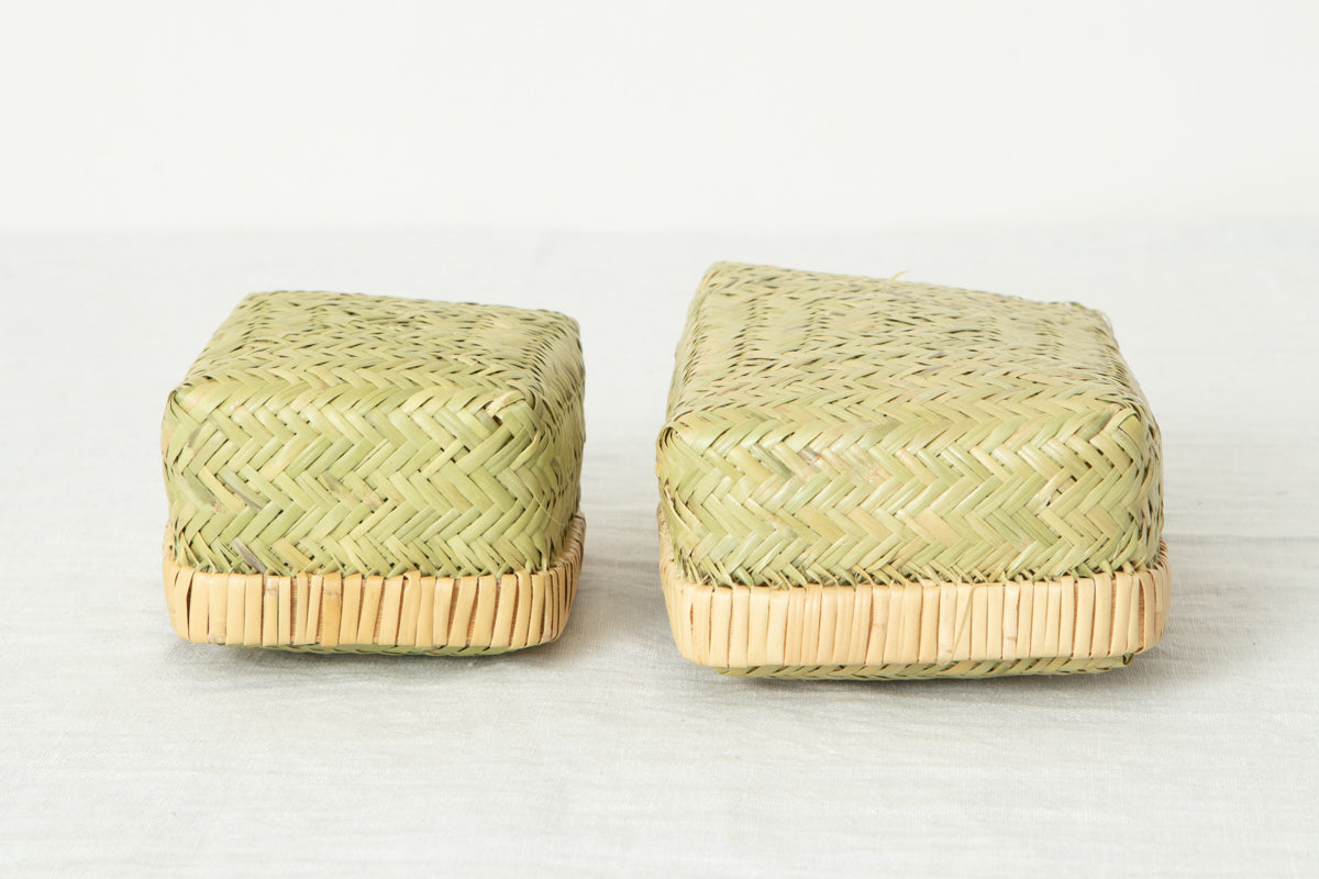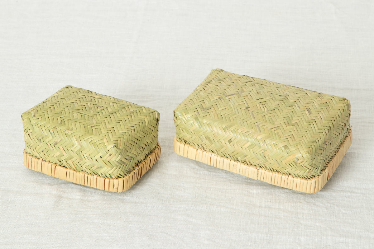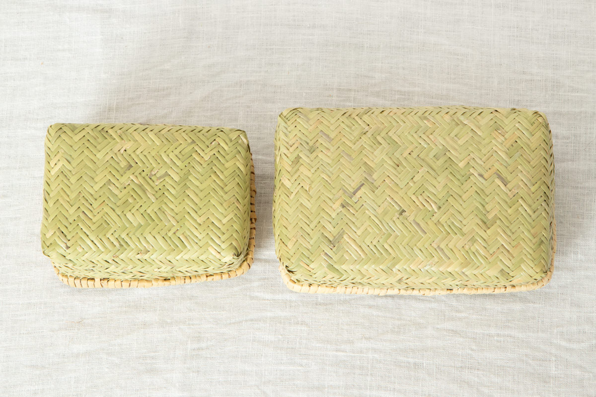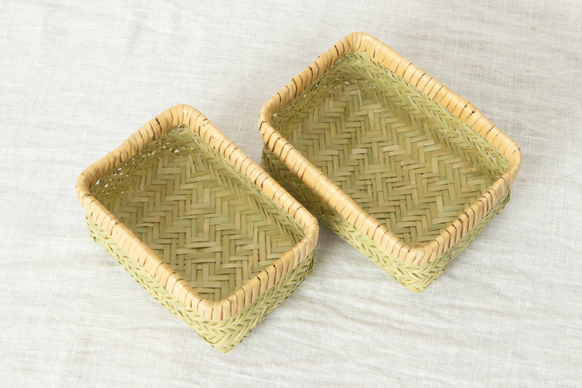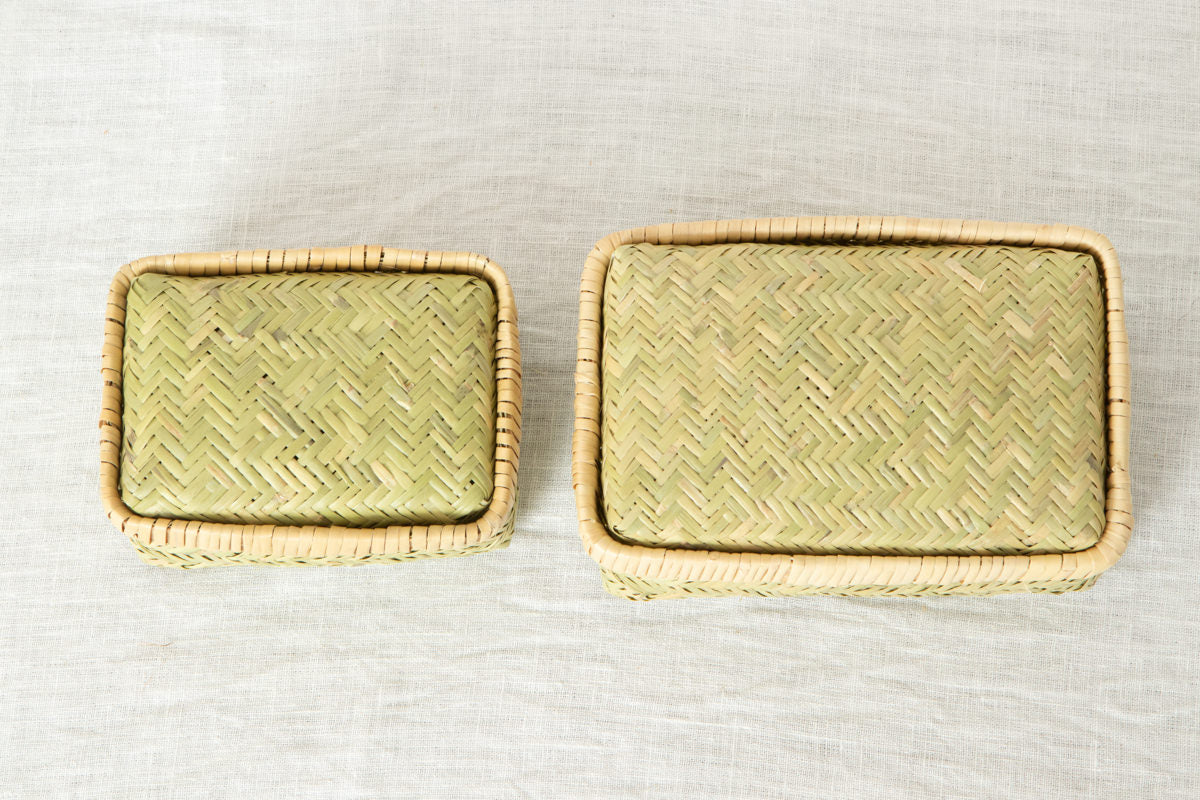 こちらのお弁当かご、すず竹細工の中でも、このように身のかごと蓋のかごをそれぞれ作り