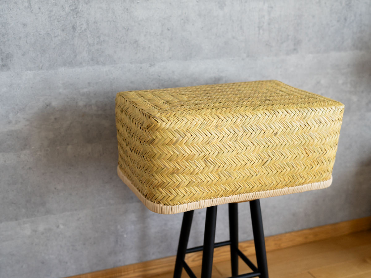 こちらは、すず竹で編まれた「行李 -こうり-」です。