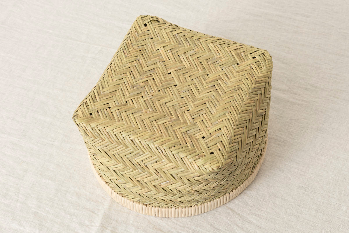 こちらはすず竹で編まれた、「おぼけ」とよばれる丸い形のかごです。