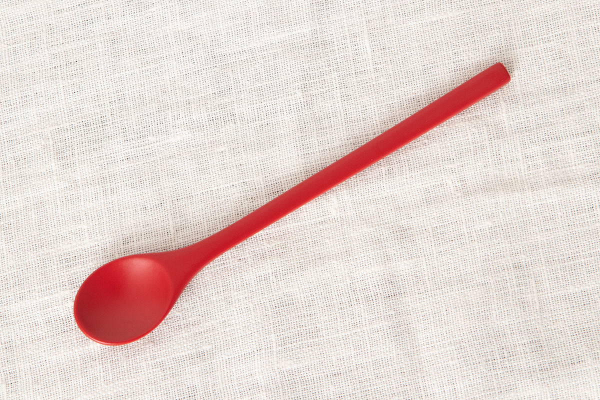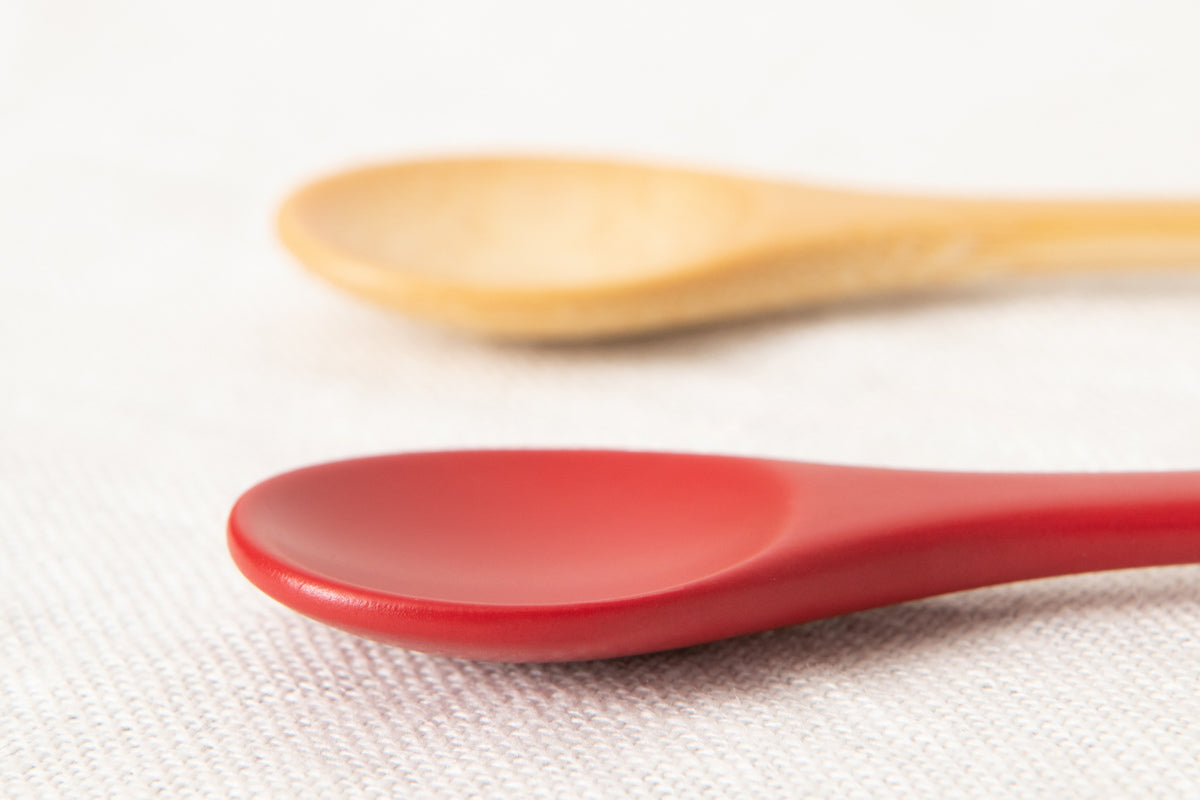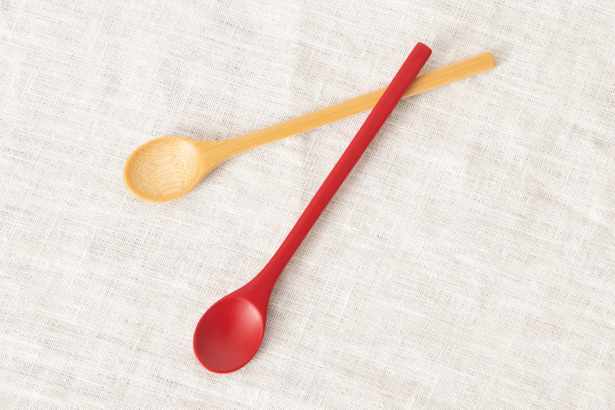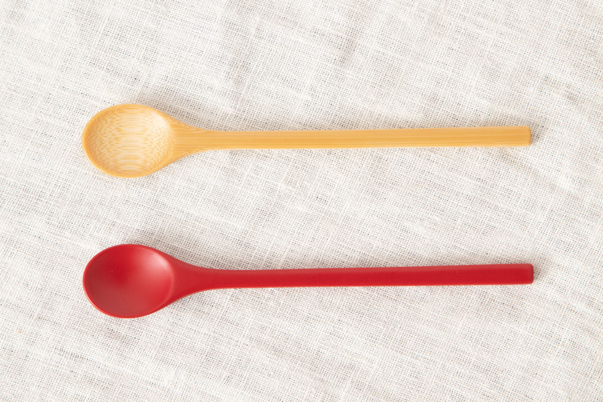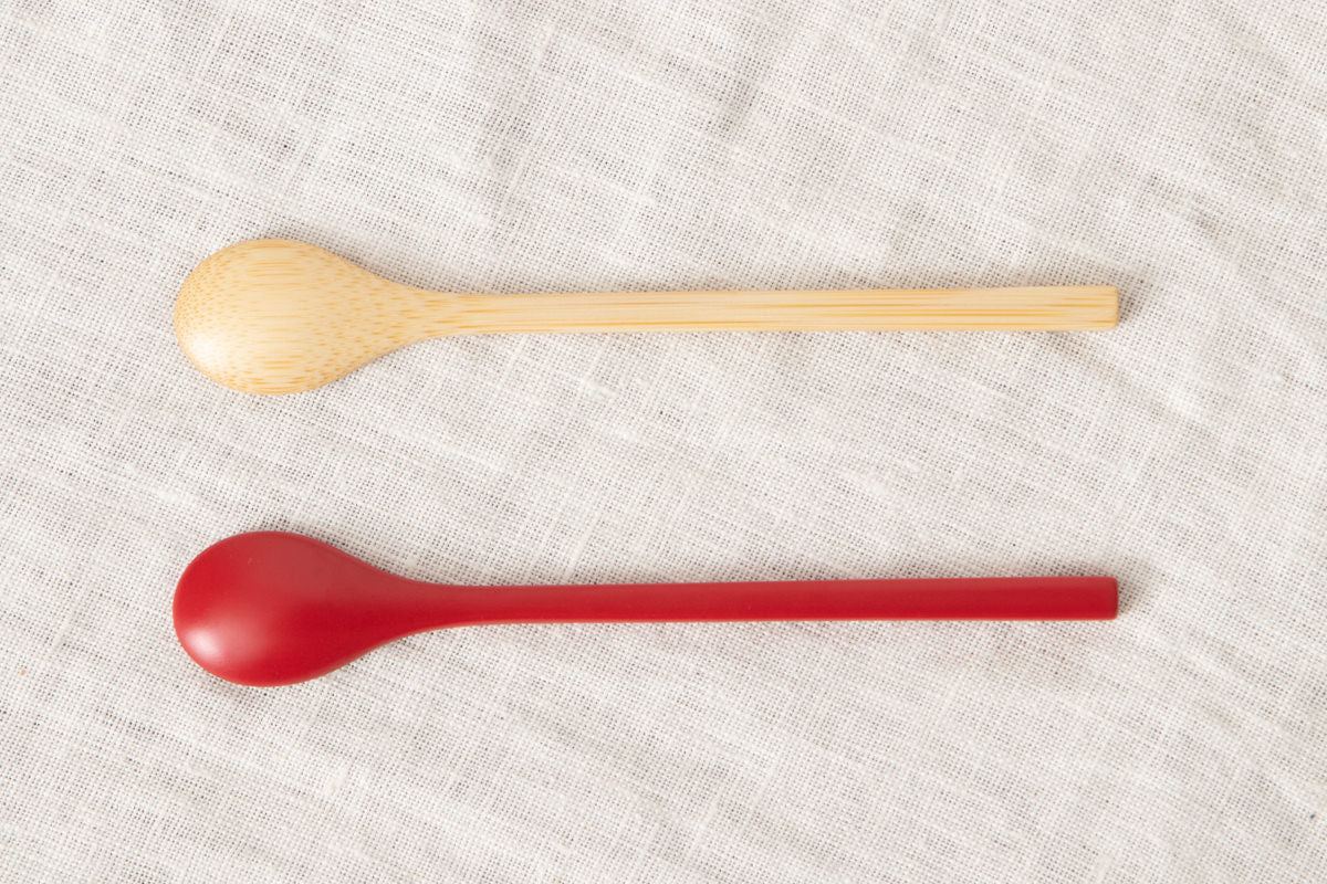 こちらは「生成り」と「赤」、二種類の色があるコーヒースプーンです。
