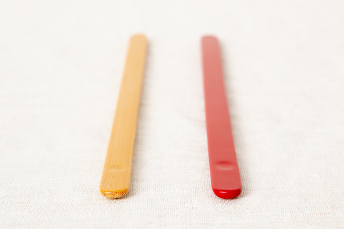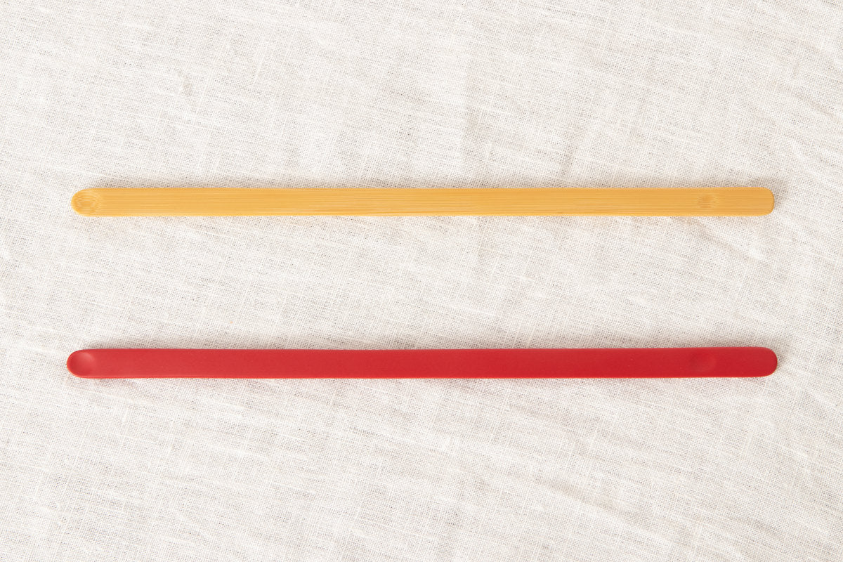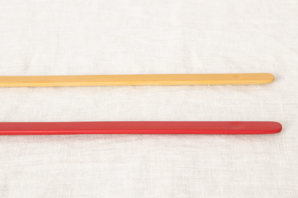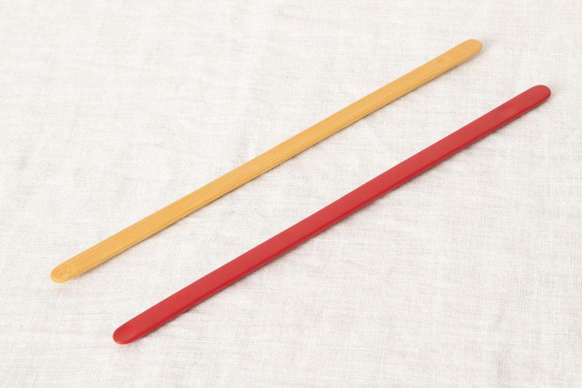 こちらは「生成り」と「赤」、二種類の色がある全長25cmのマドラーです。