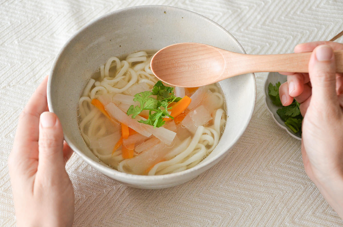 ラーメンやうどんなどの麺類を召し上がる時にも、しっかりとスープをすくうことができますし、
