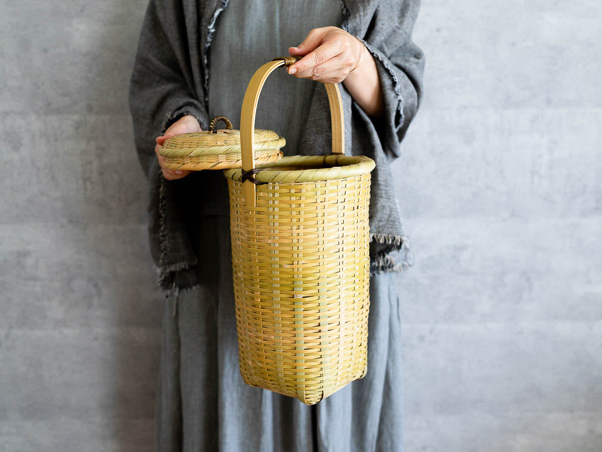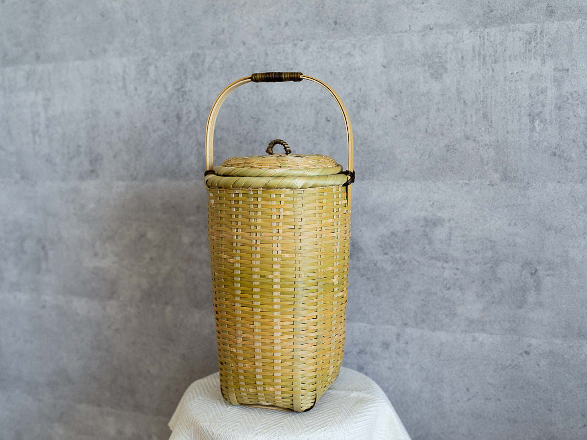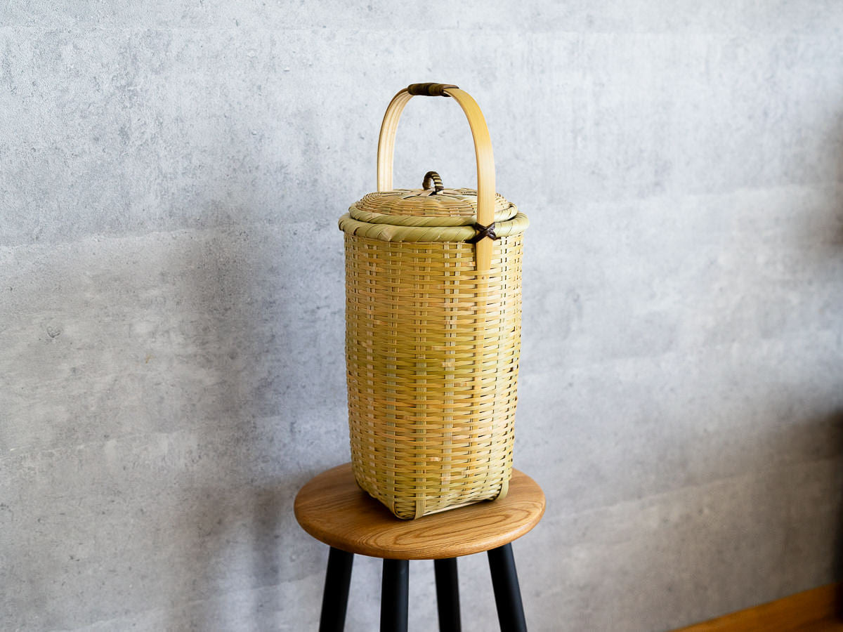 大分県/真竹(青竹) 蓋付スリムバスケット 220692-1