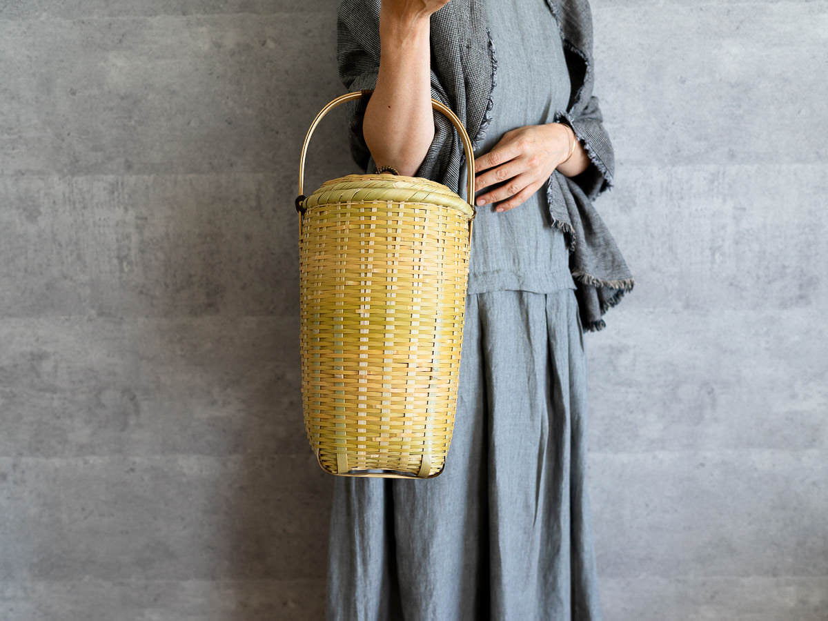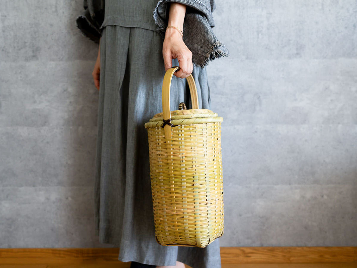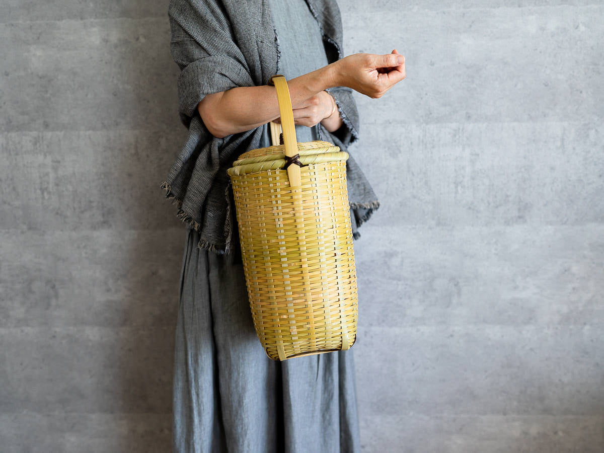 大分県/真竹(青竹) 蓋付スリムバスケット 220692-1