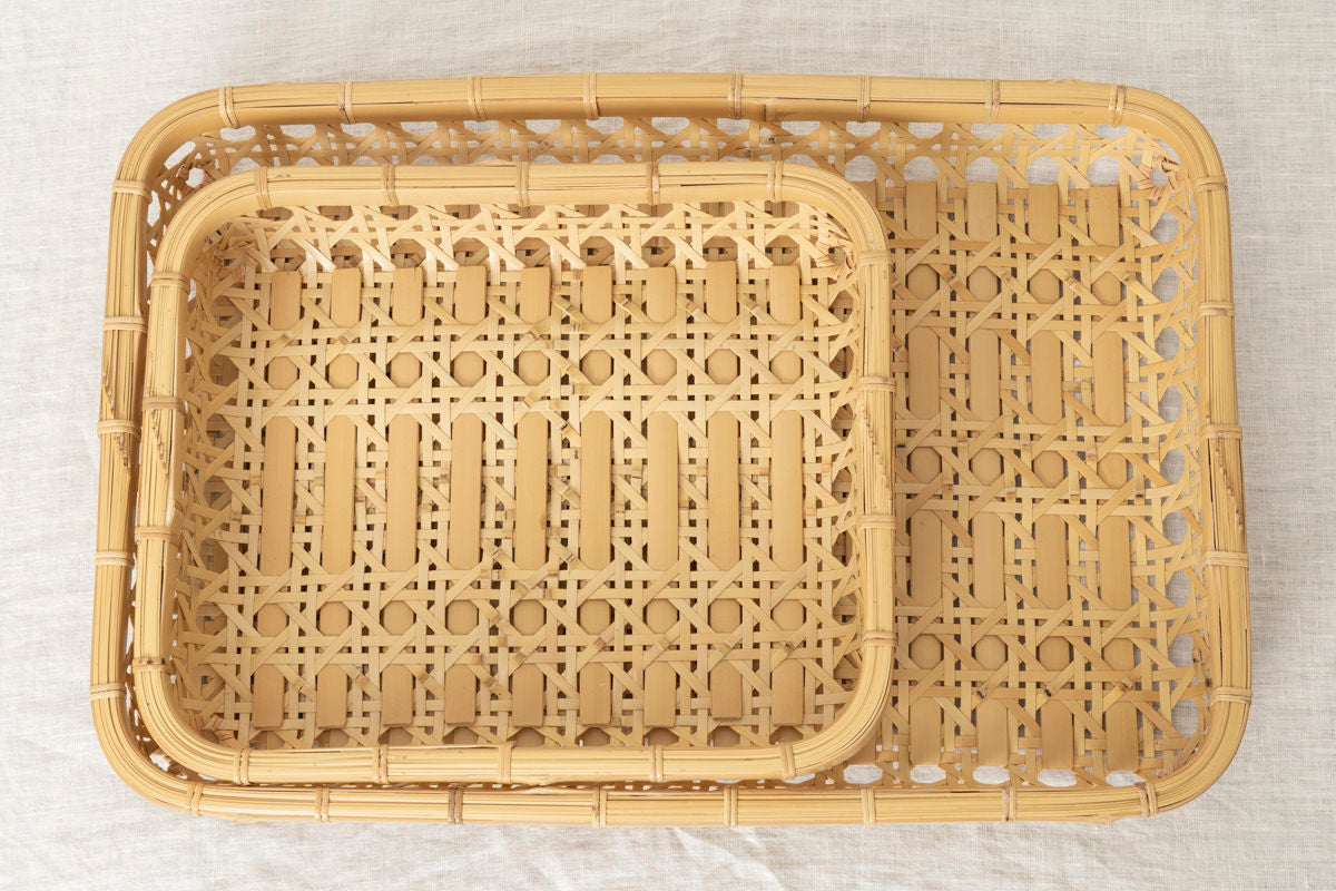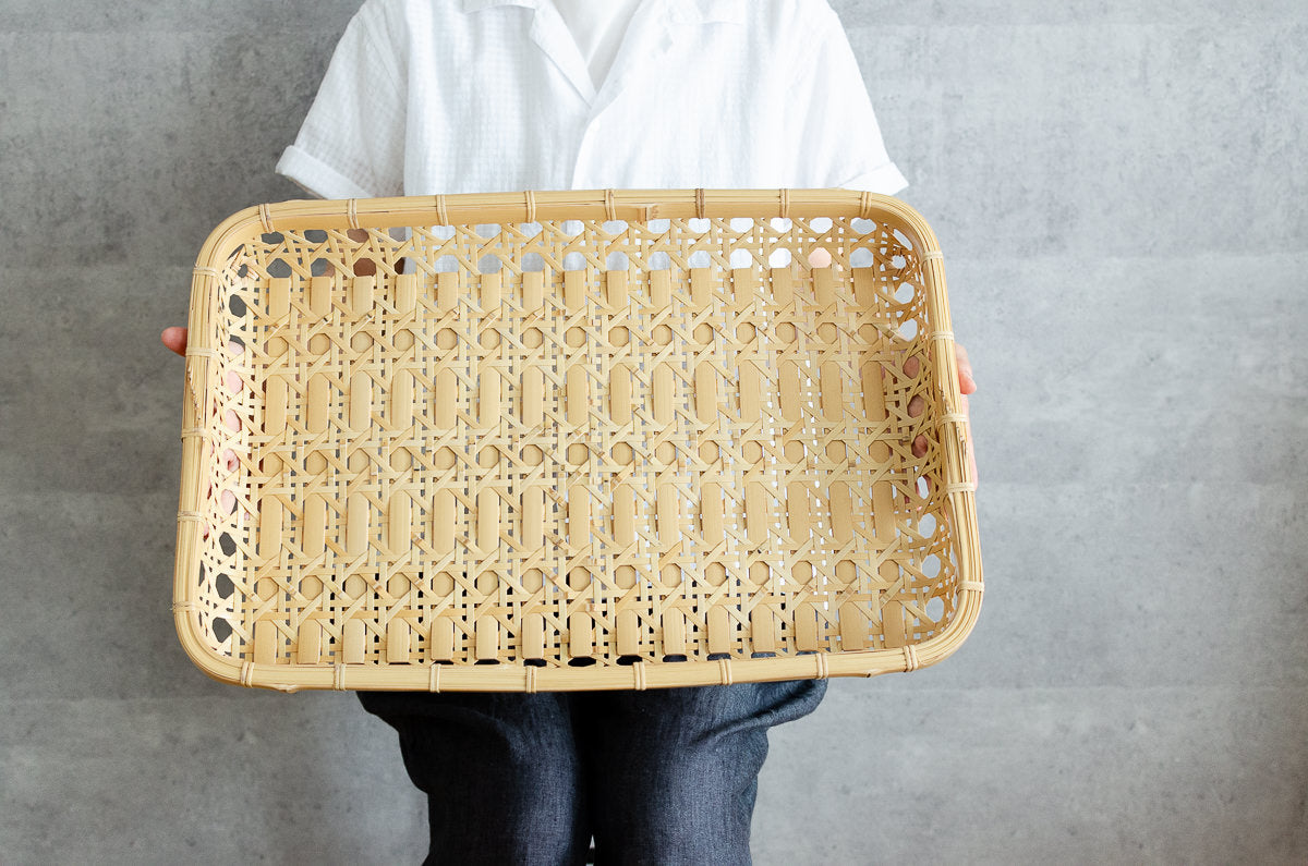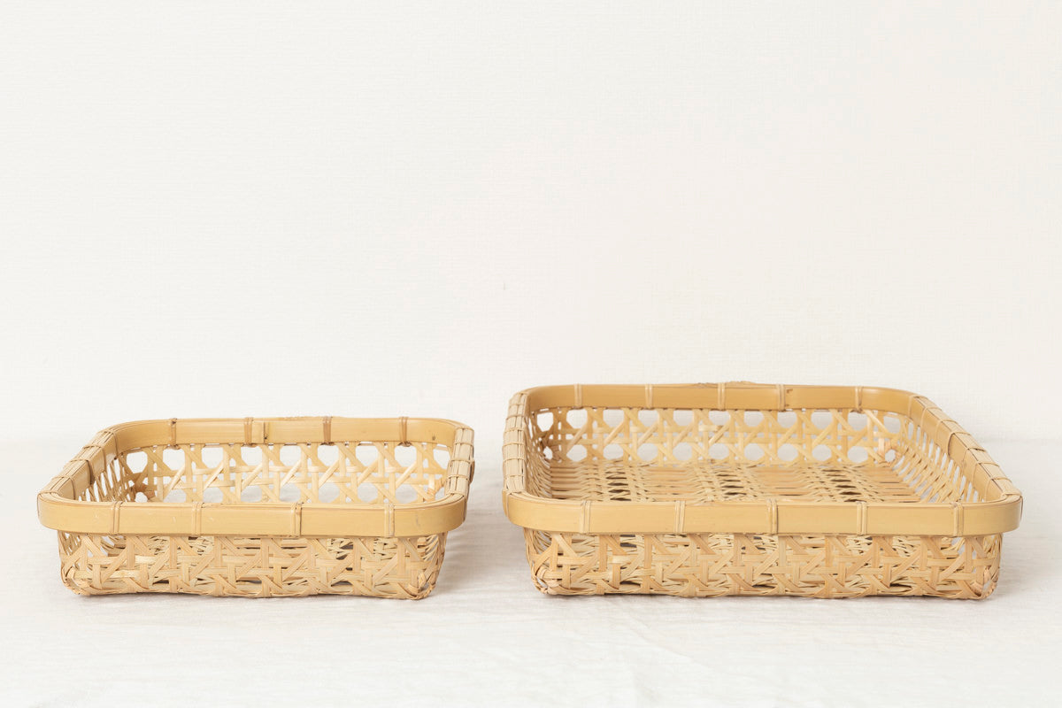 大分県/真竹(白竹) 平かご 八つ目編み 小・大 2サイズ 220801