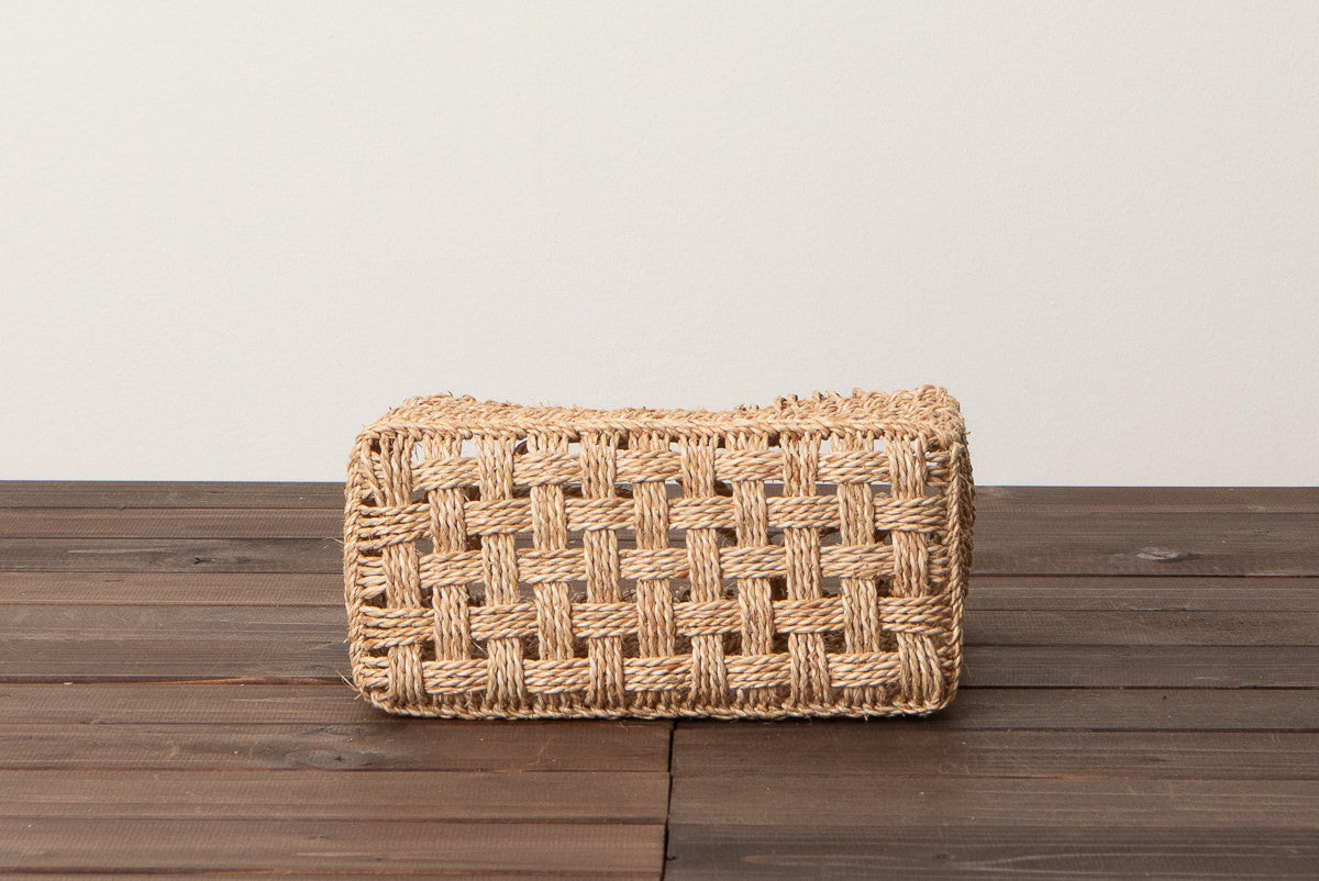 木型を使っているとはいえ、手でよられた月桃の縄のみでこんな端正な編み模様に仕上がることに驚きます。 -