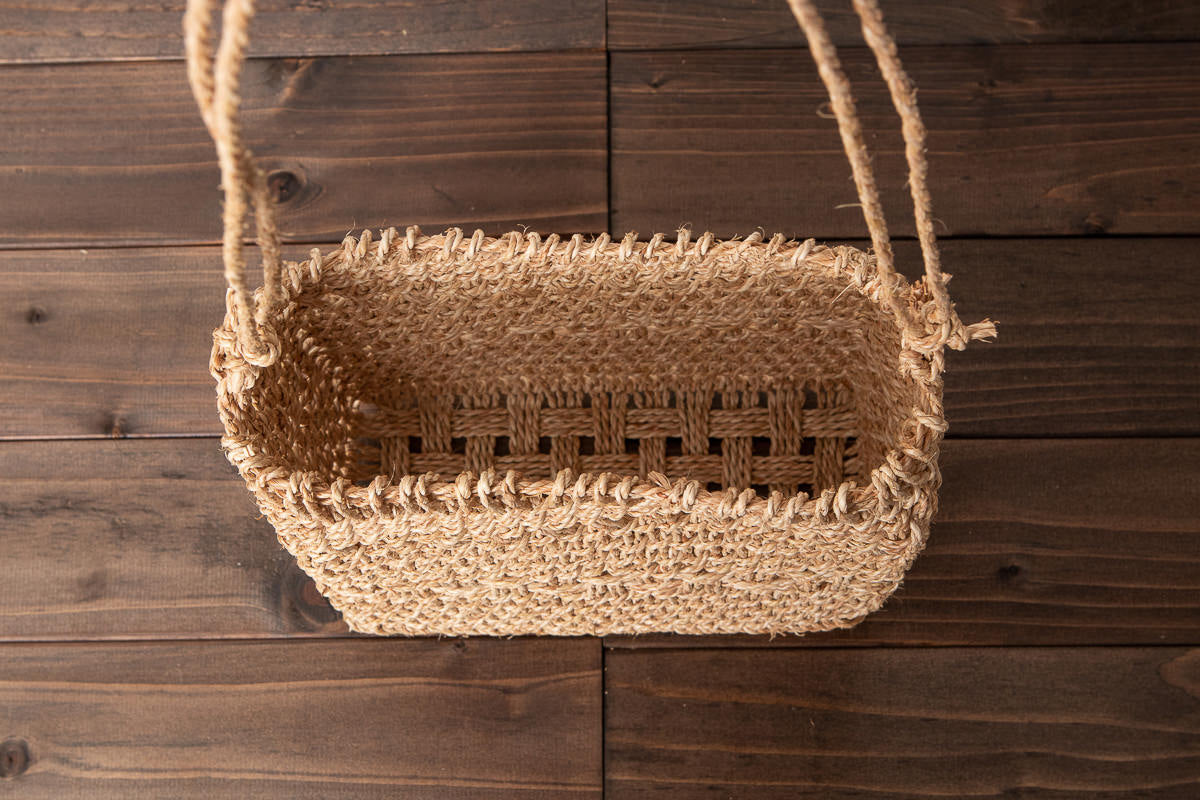 かご部分はもちろん、肩紐部分も全て月桃の縄だけで、作られています。 -