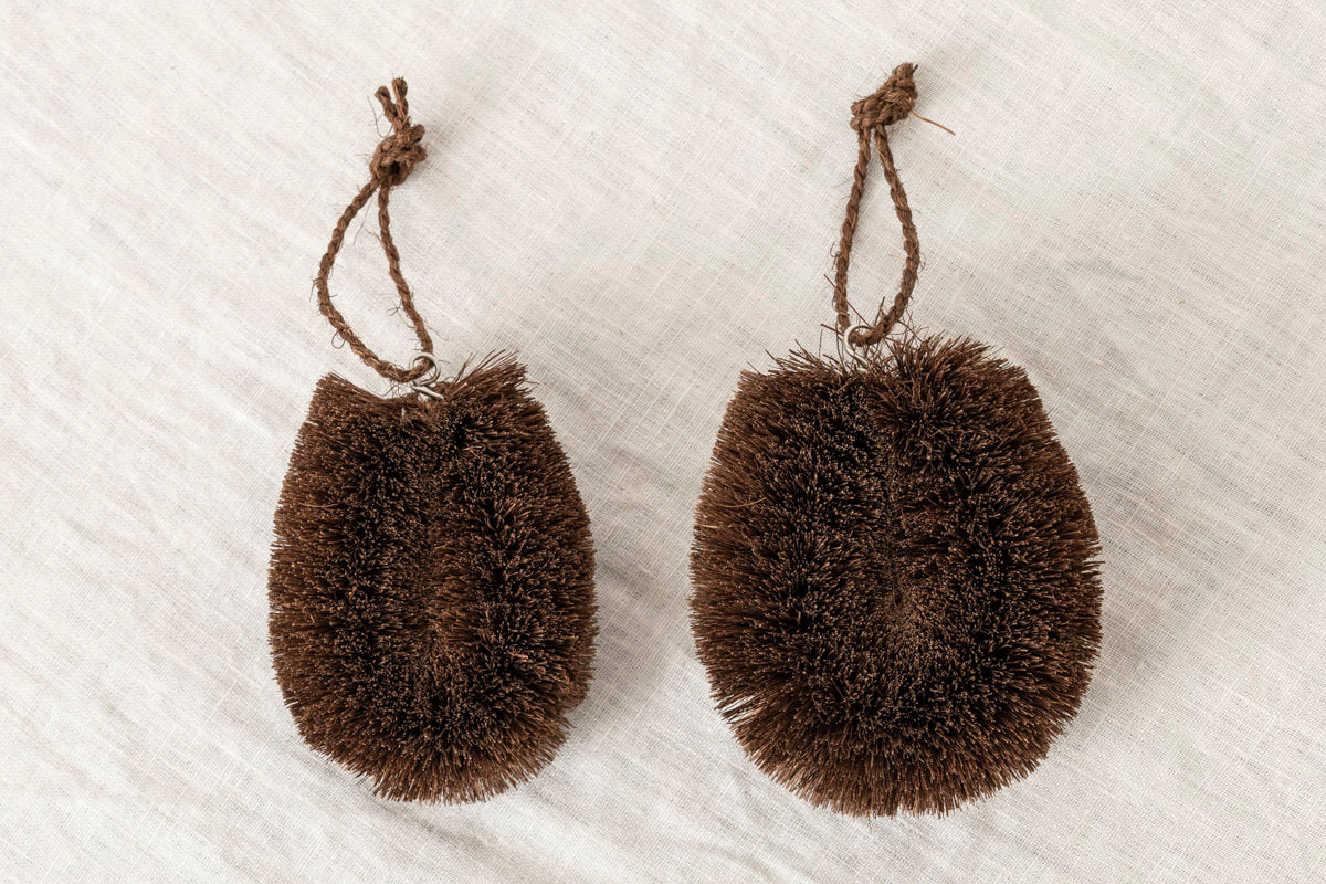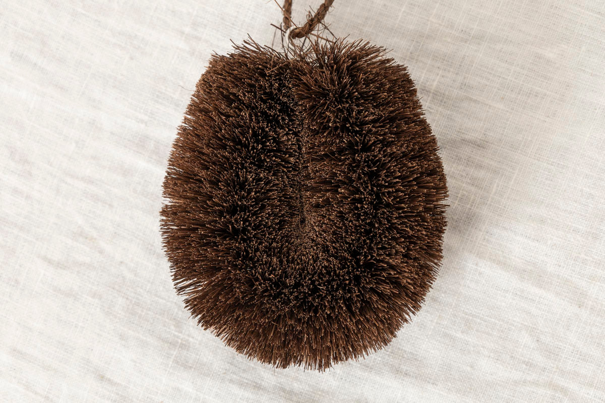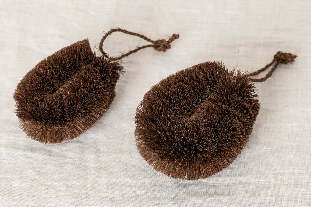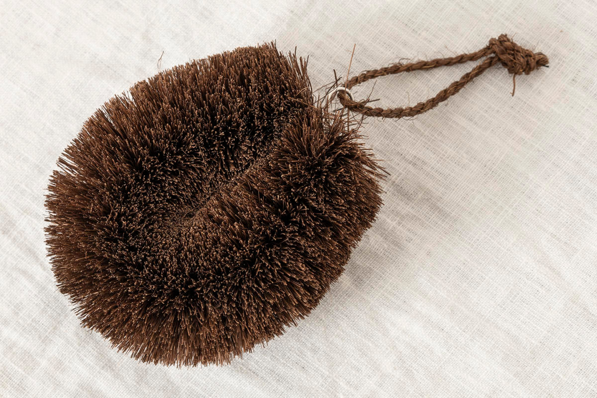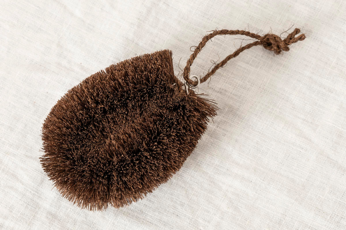 しゅろの繊維は、しっかりと選ばれたものであれば、肌にふれてもやさしく、ボディケア用として体を洗うのにも使えるほど。