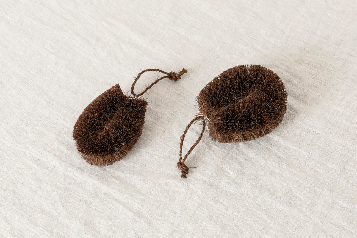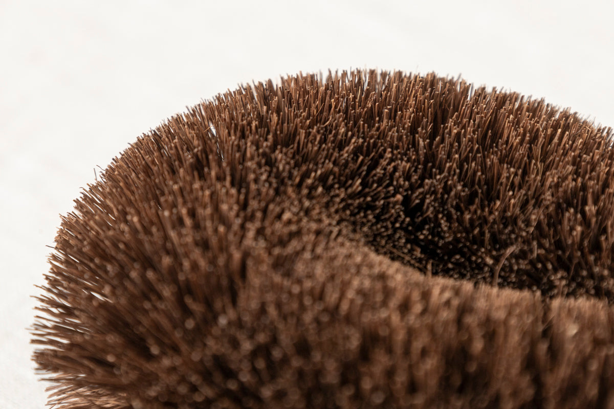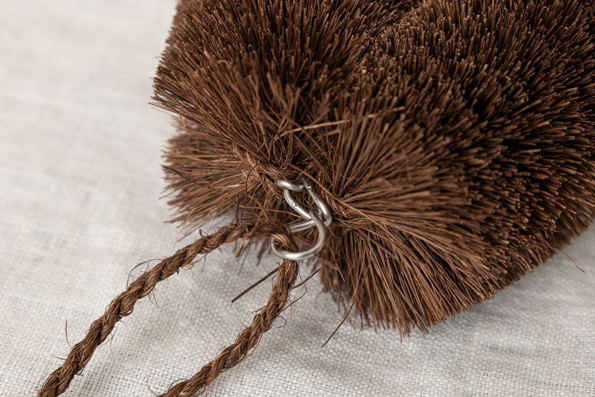 天然のしゅろで作られたたわしは、繊維にほどよいかたさとしなやかさがあり、ガラスのうつわやコップ、テフロン加工のフライパンや鍋など、傷つけたくない道具にも安心しておつかいいただけます。