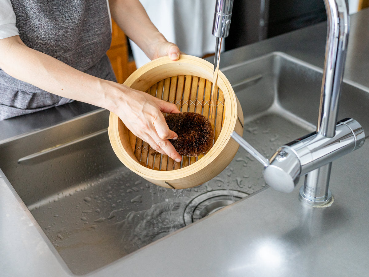 たわしは、かごやざるのケアにおいても大事な道具です。編み目にもすっと入り込み、細かなほこりを払い、奥の汚れもしっかりとかき出してくれます。