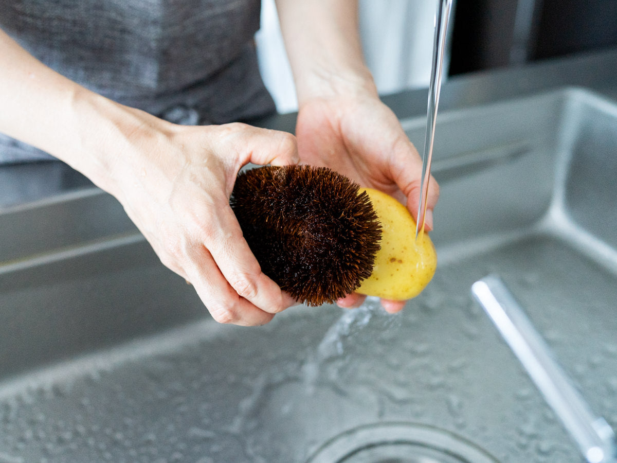 しゅろのほどよいやわらかさで、野菜の皮は残して、泥の汚れだけを落としてくれます。