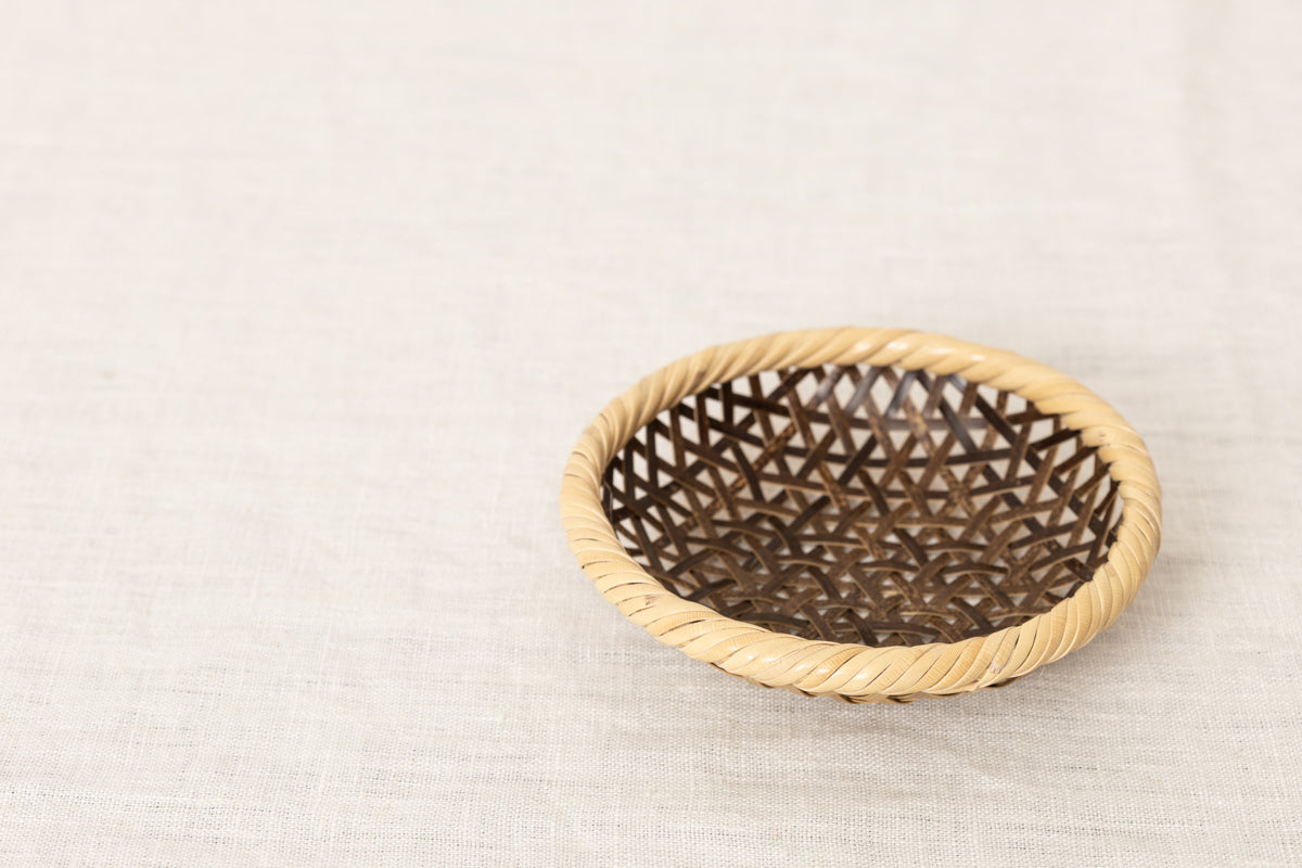 こちらは「黒竹(くろちく)」という竹で編まれた、小さくて丸いかごです。