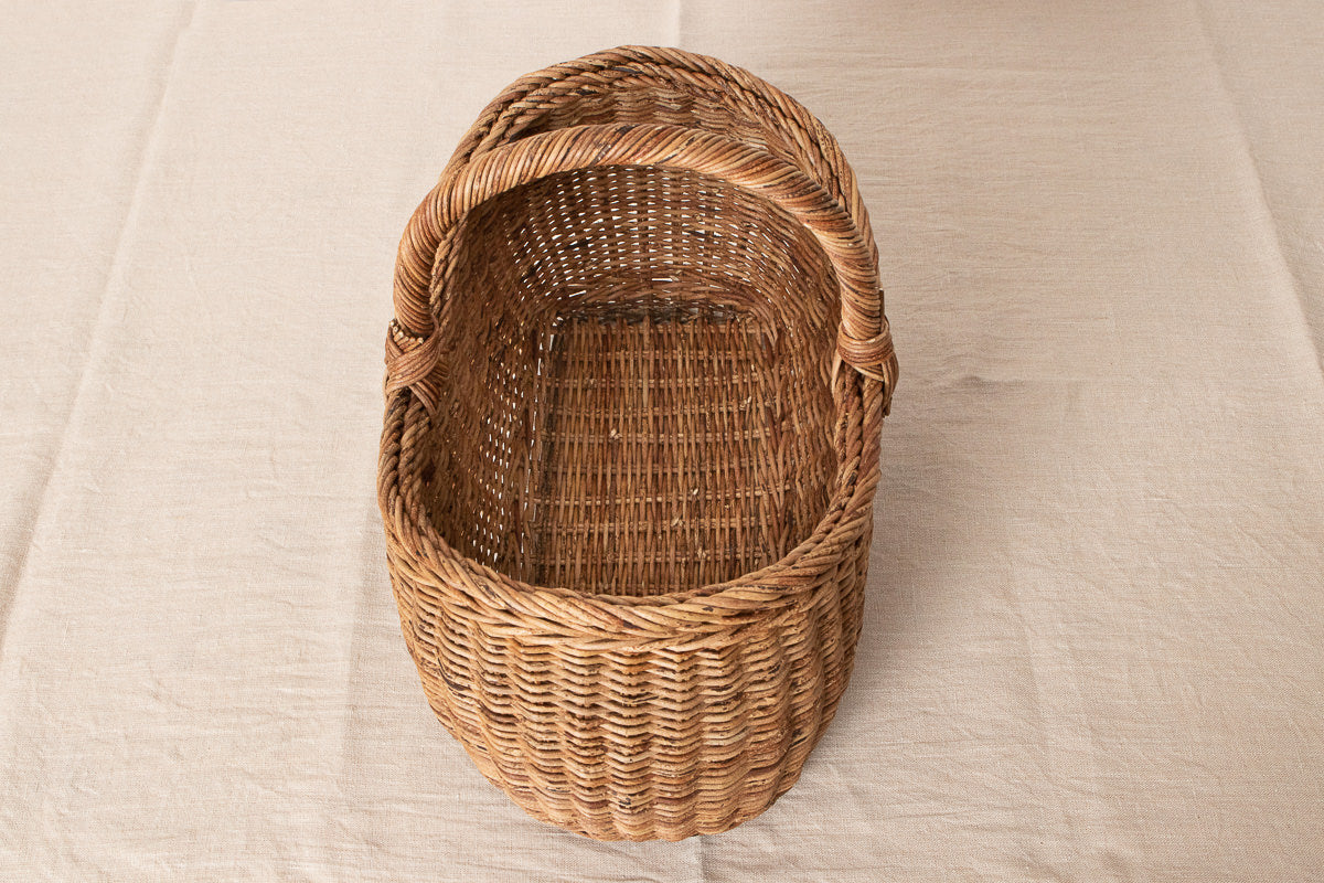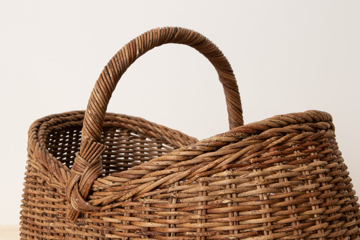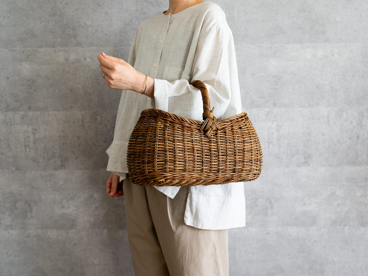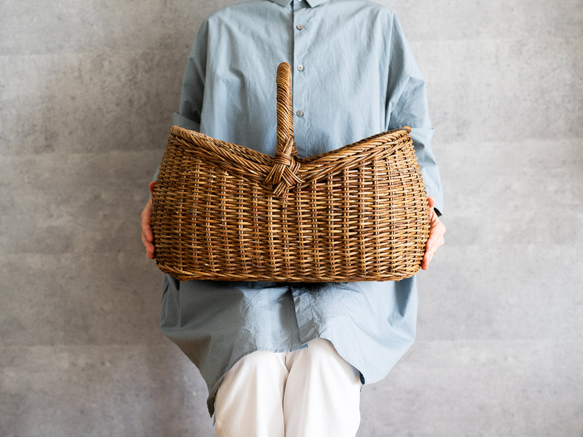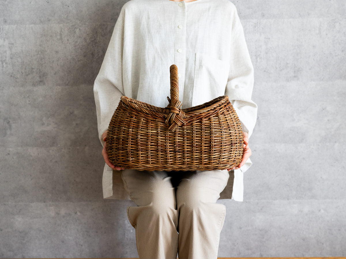 こちらは、あけびの蔓-つる-で編まれた、持ち手つきのかごです。