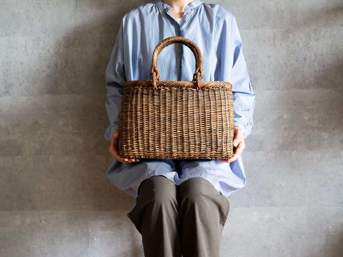 あけび蔓の風合いを存分に楽しめる手提げです。