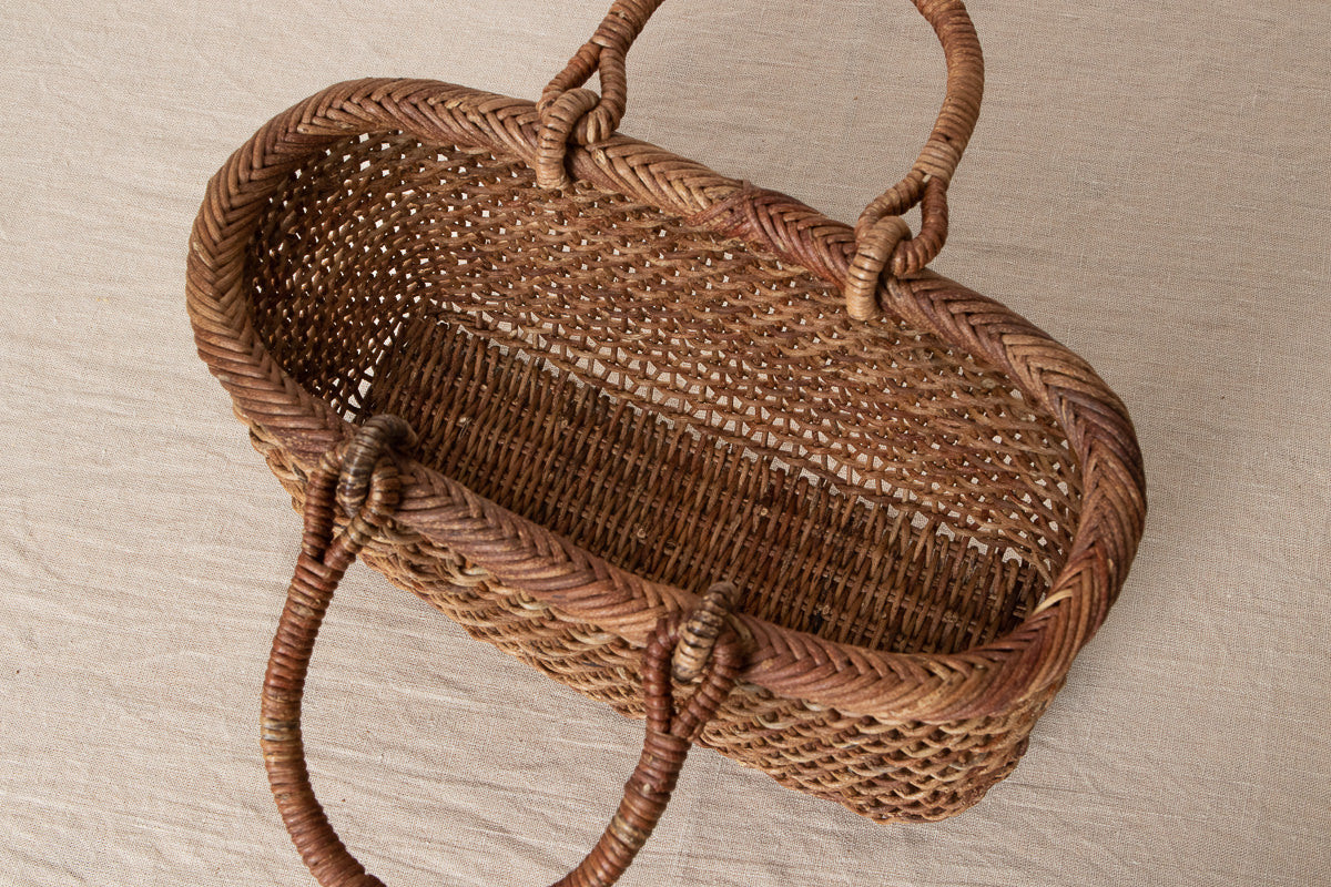 こちらは、あけびという樹木の蔓-つる-で編まれた、手提げです。
