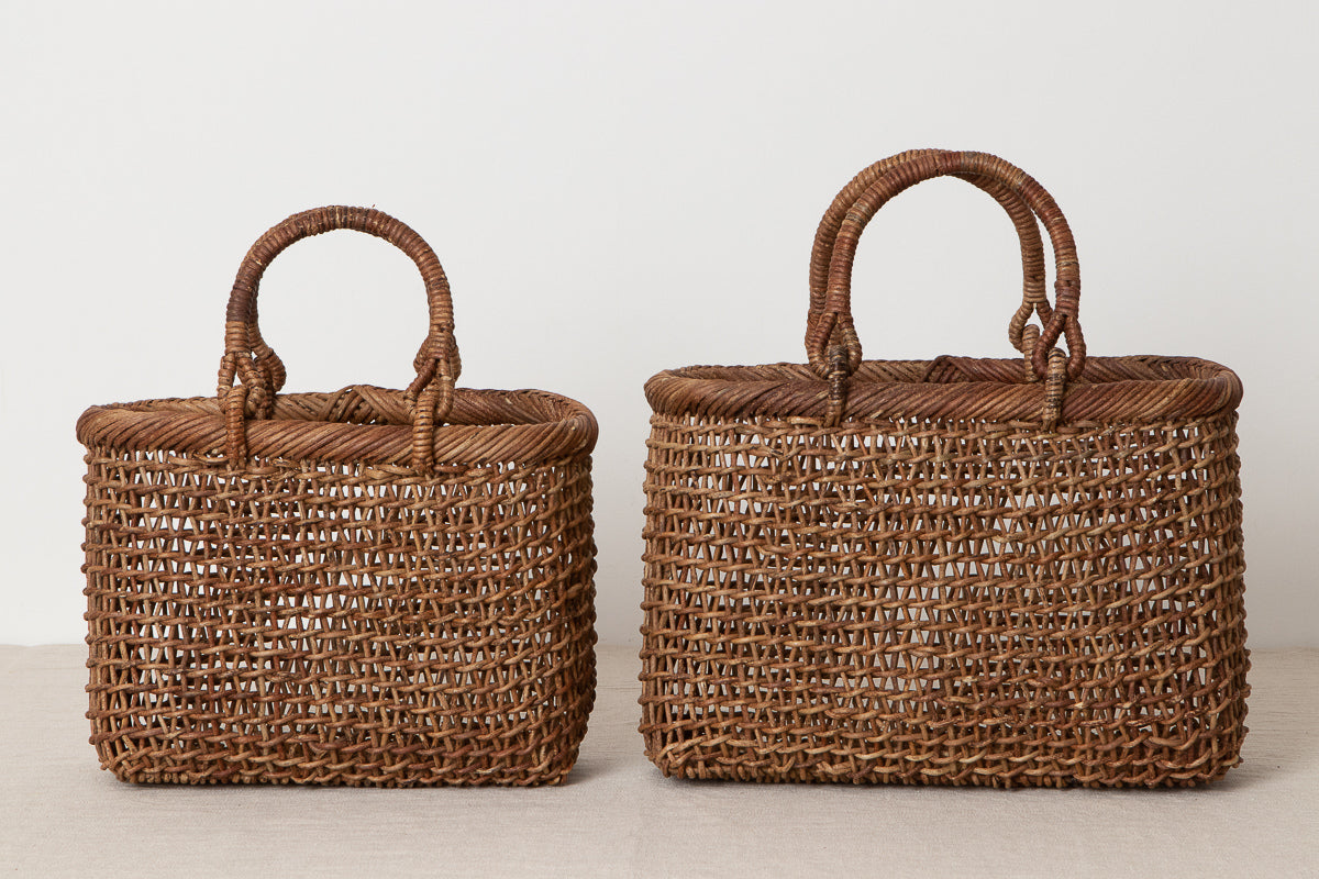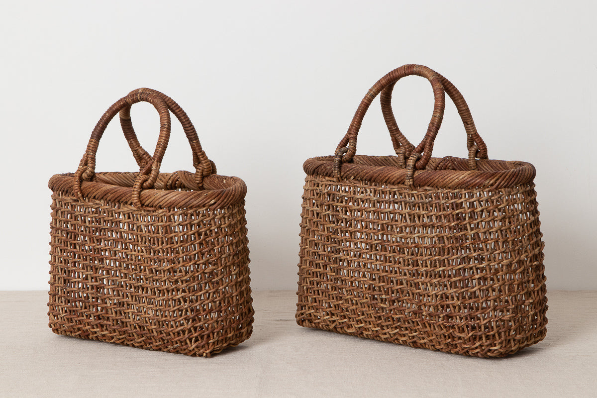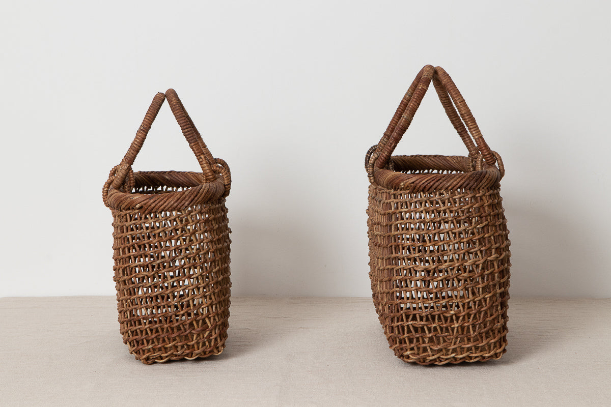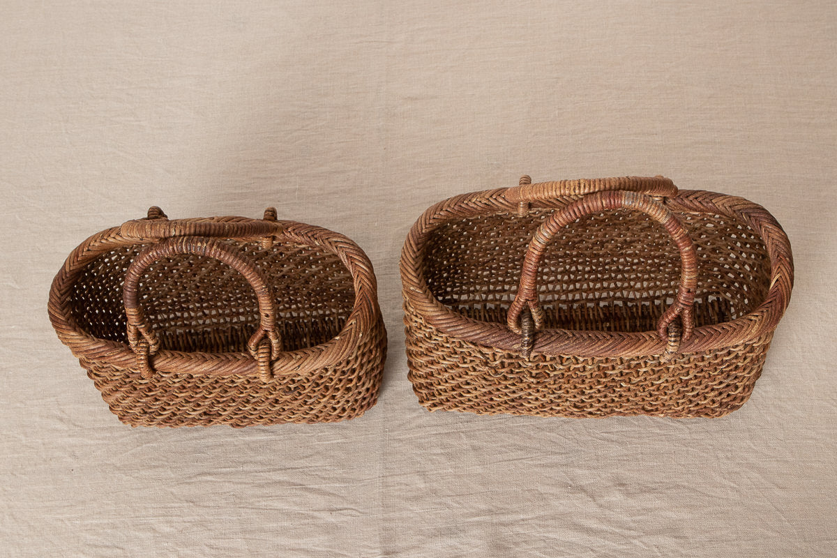 この表皮をむいたグレーがかった色の蔓で編まれるかごもあります。