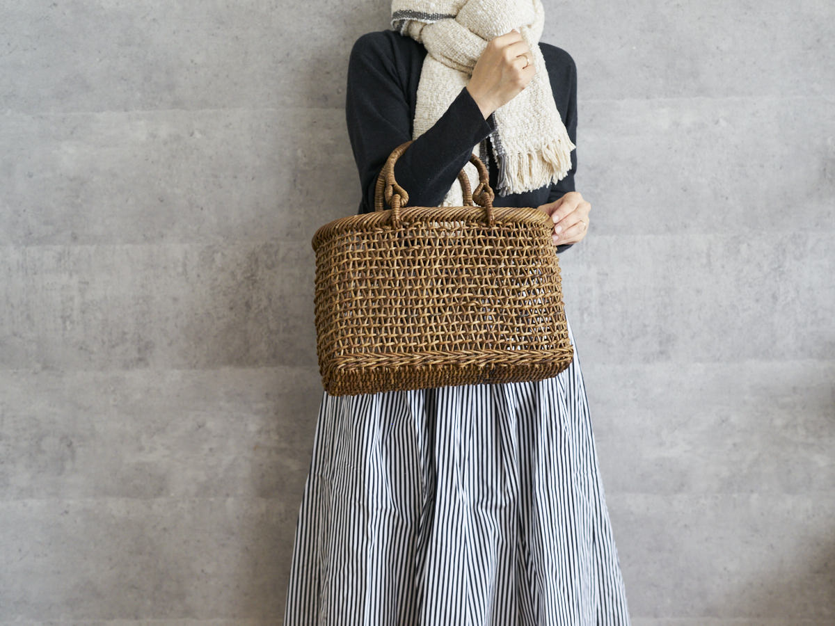 中サイズ:約34x18x高さ24cm(持ち手付き高さ38cm)/570g