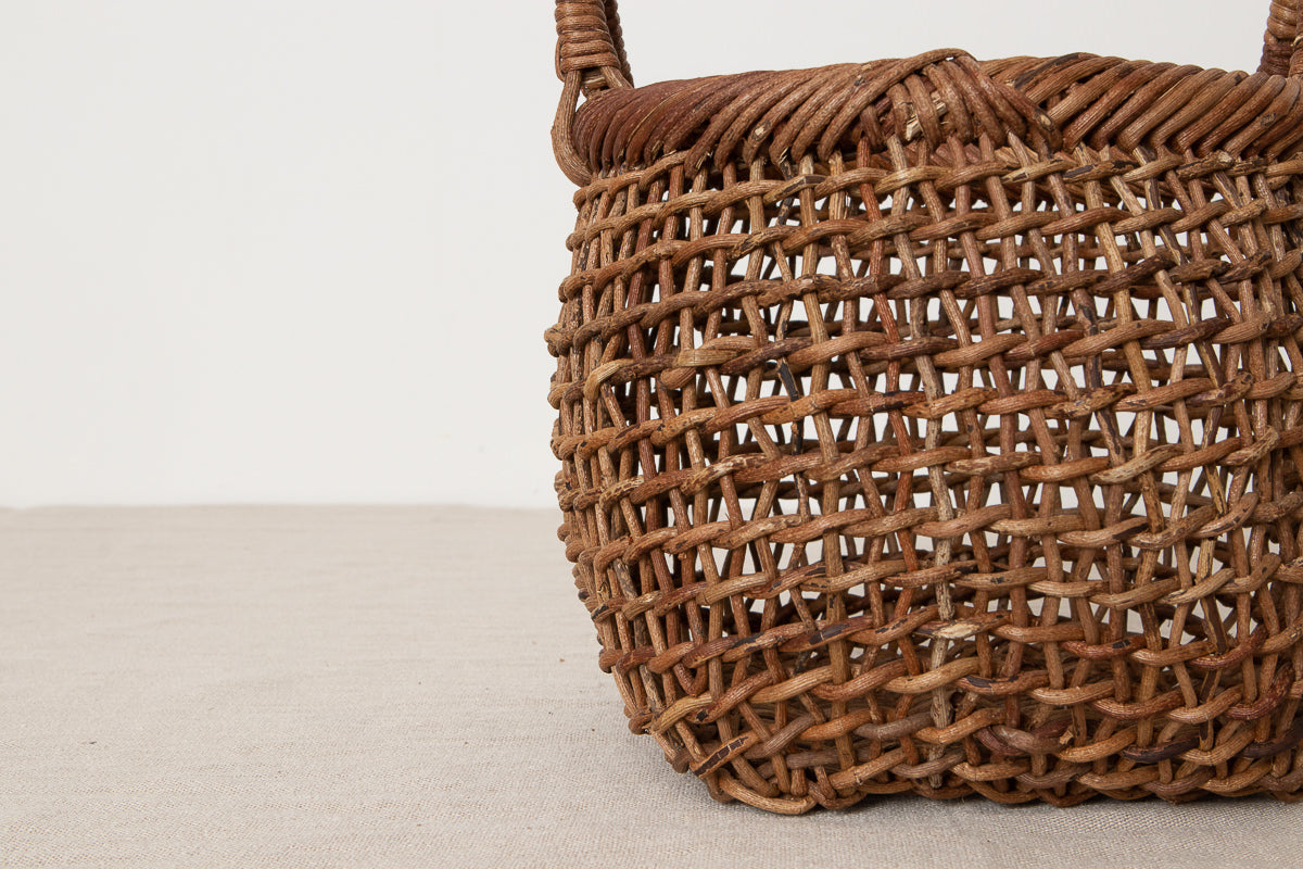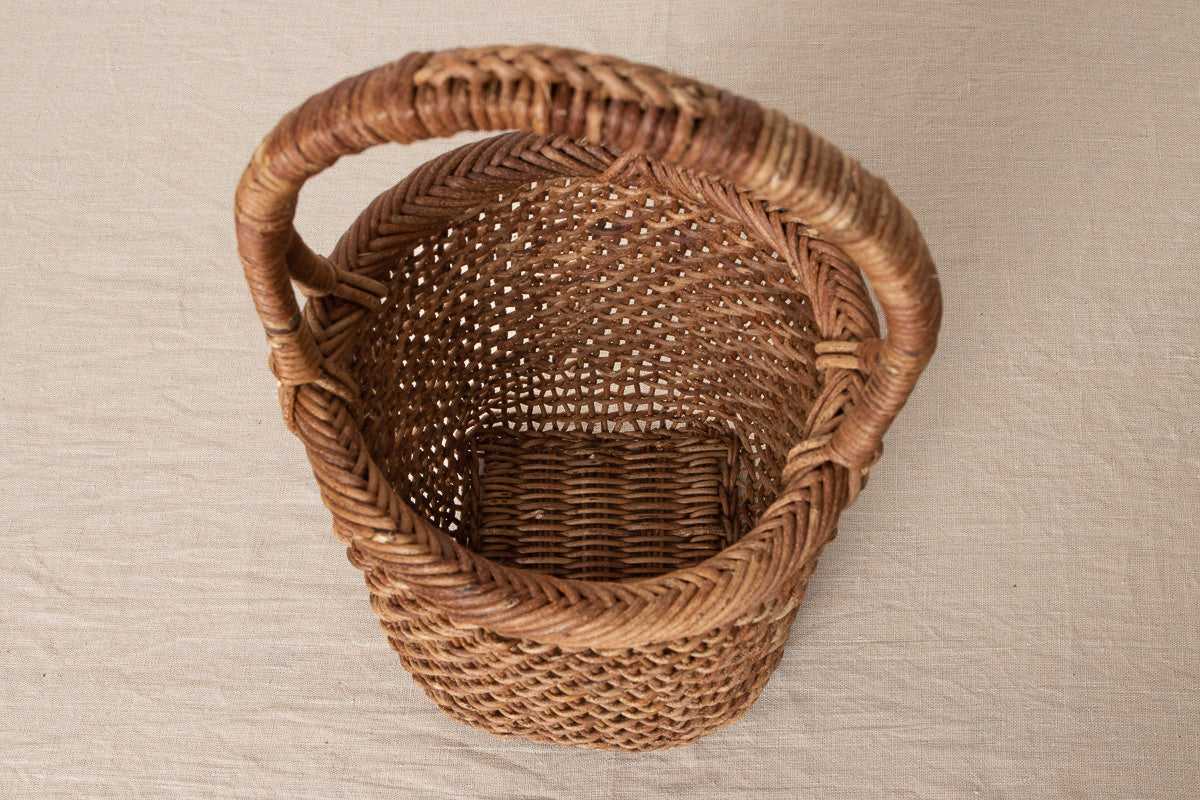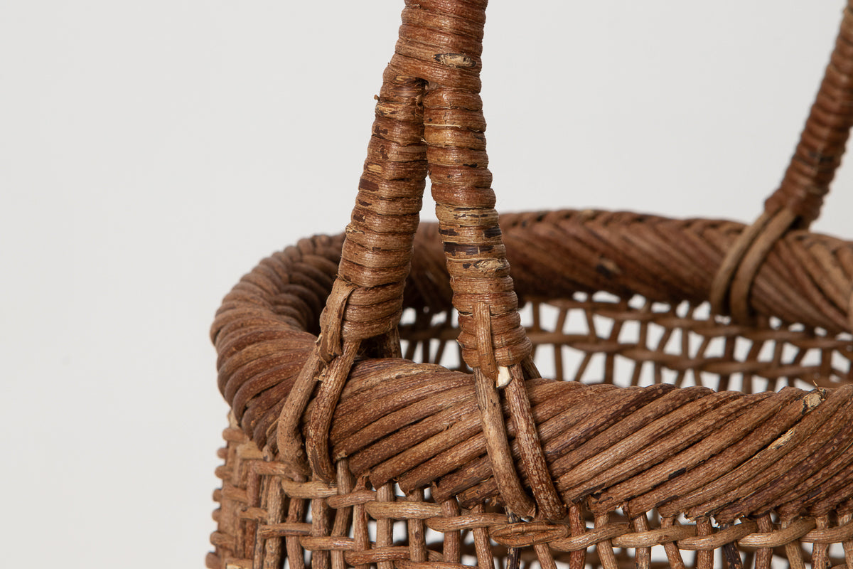 こちらは、あけびという樹木の蔓-つる-で編まれた持ち手つきのかごです。