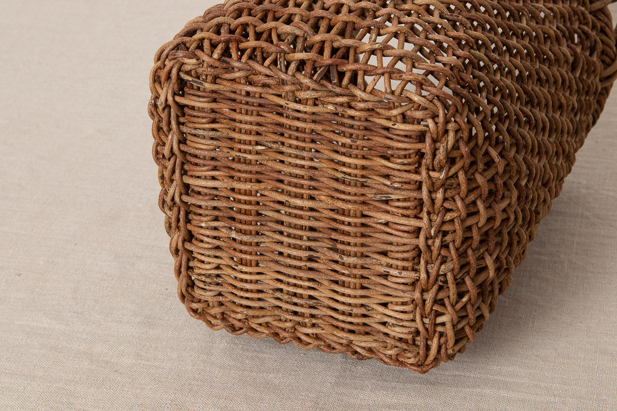 この表皮をむいたグレーがかった色の蔓で編まれるかごもあります。