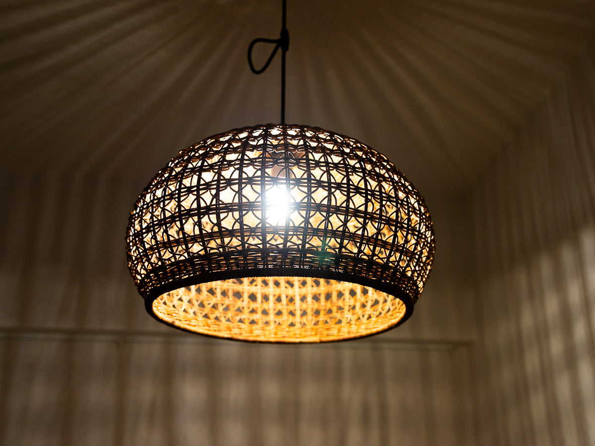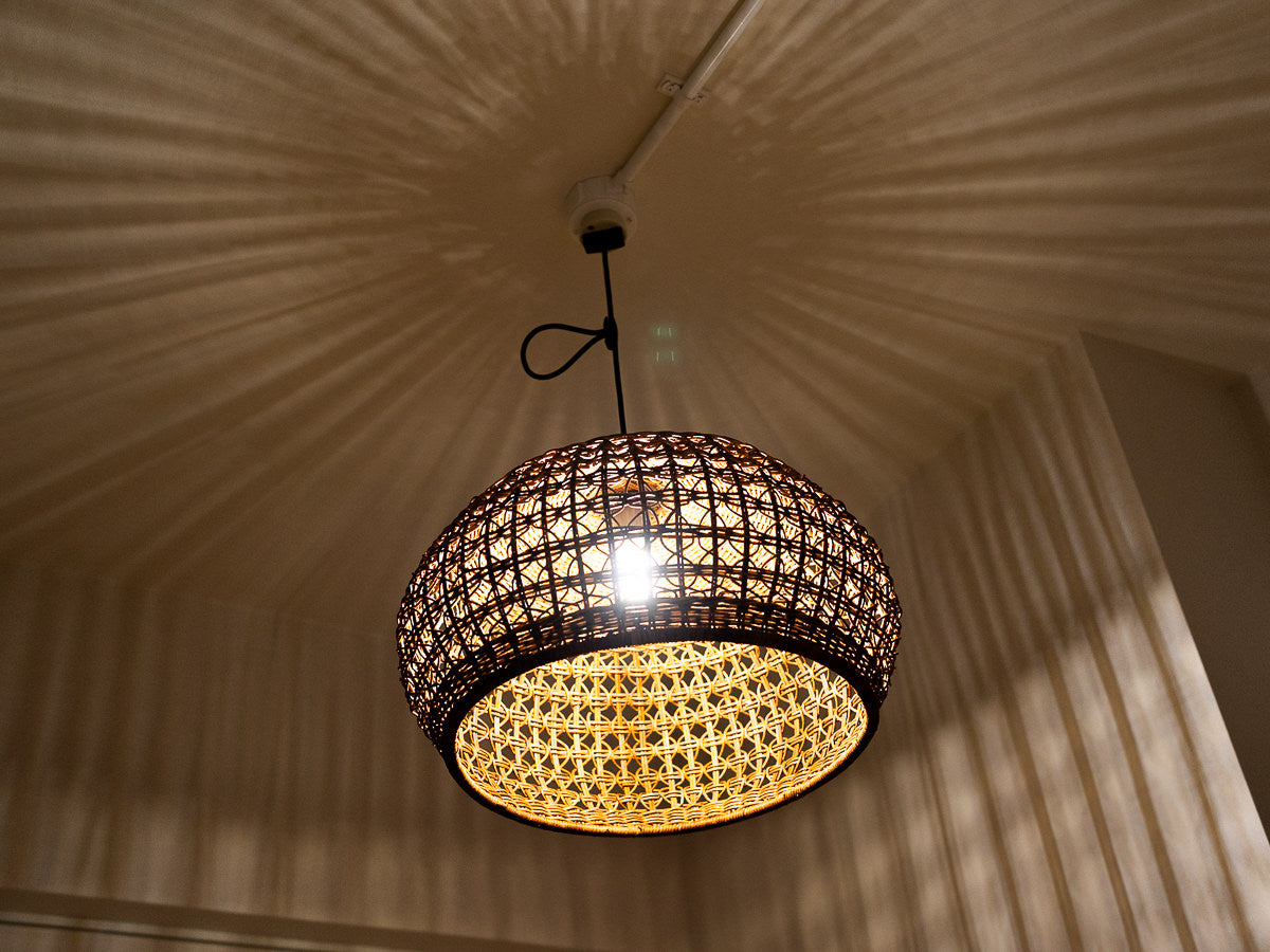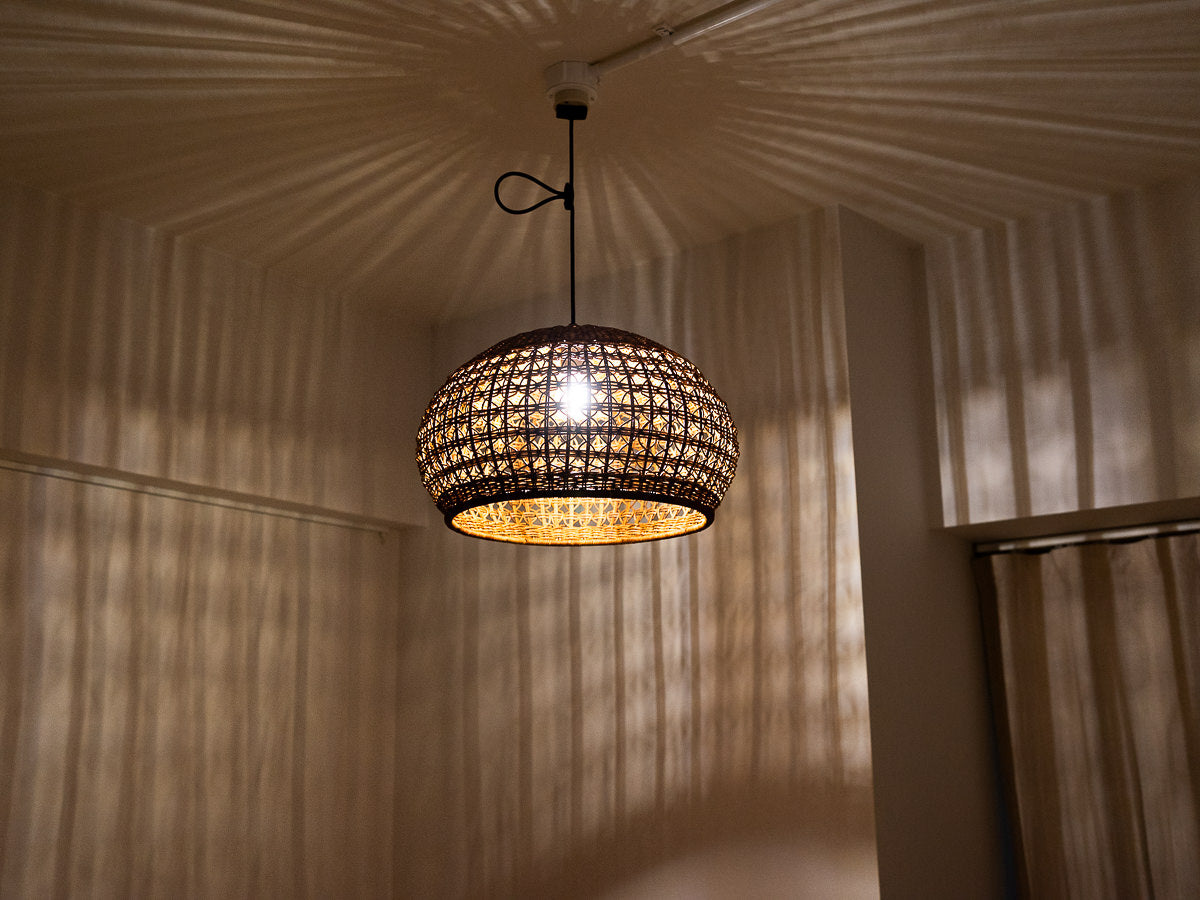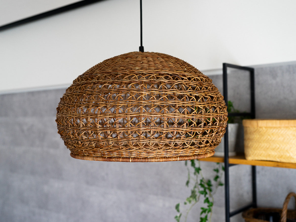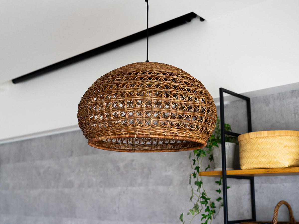 こちらは「あけび」の蔓で編まれたペンダントライトです。