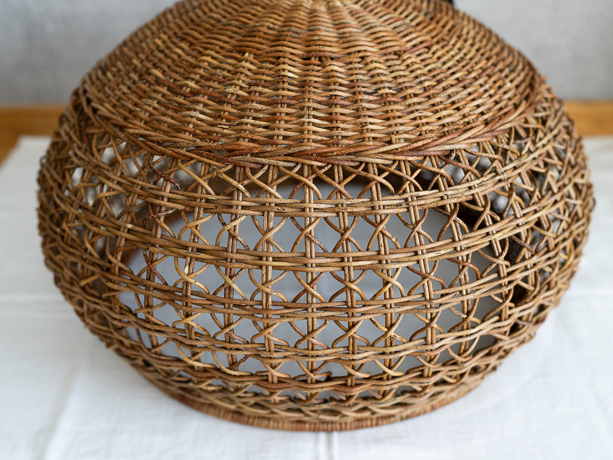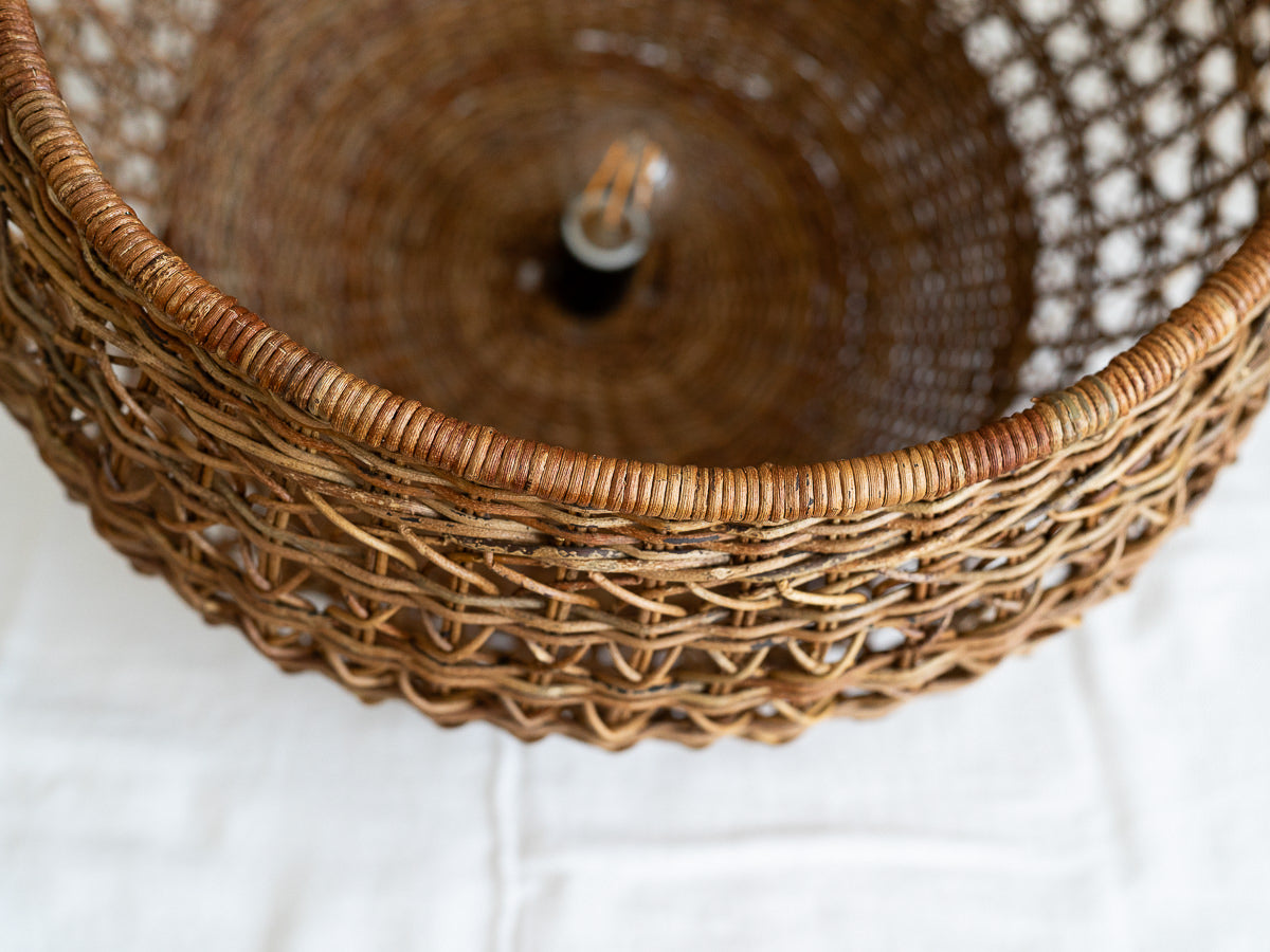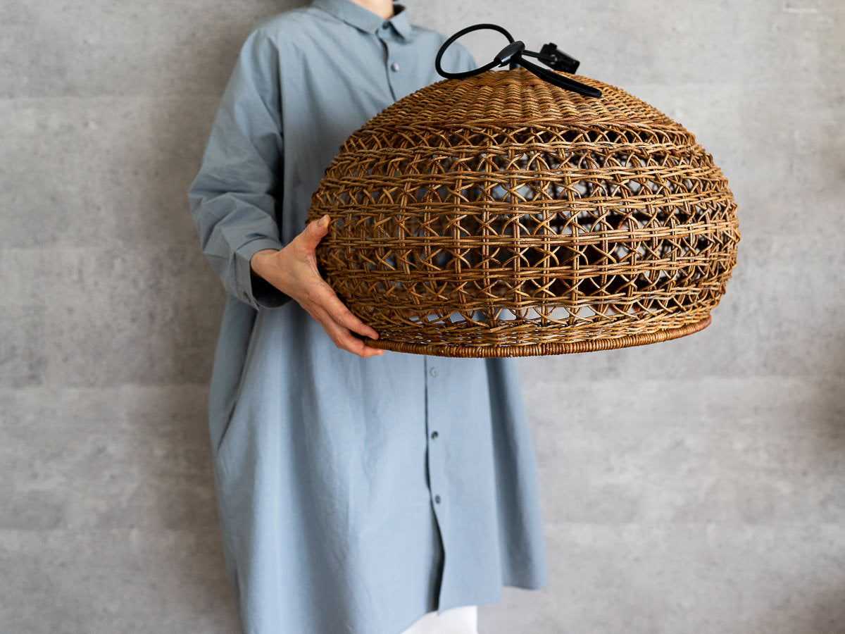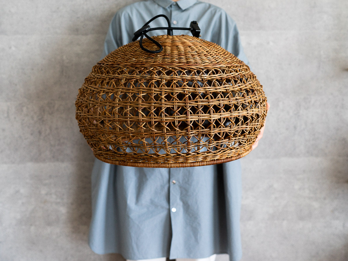 「このあけびで編まれたペンダントライトが部屋にあったらどんなにか素敵だろう!」受注予約受付はとうに過ぎていましたがもしかしたらと思い購入ボタンを押しました。丁寧なメールと共に、後日届いた編み籠、素晴らしい、愛おしい籠でした。大きな箱に丁寧に丁寧に梱包されていました。私にとっては思い切りのいるお値段だったのですが、ずばり、買って良かった、縁を逃さずにすんで良かった。お店に並べているものたちへの店主様の熱い説明に私はいつも感動するのです。どうかいつまでもお店が続いていかれますように、美しい籠たちが途絶えることなく作られていきますように。