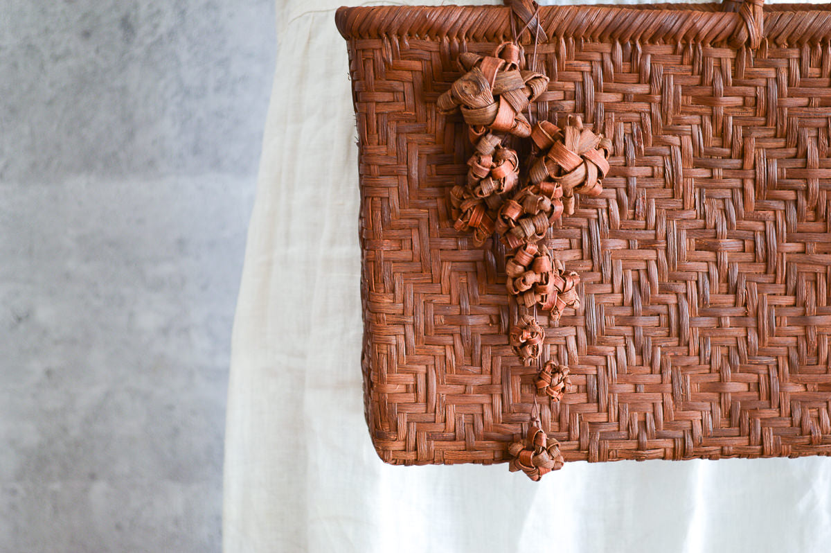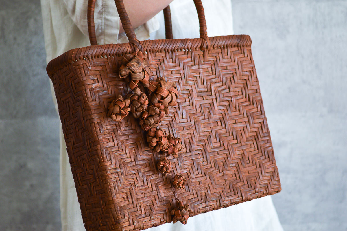 シンプルなあじろ編みのかごバッグをお持ちであれば、アクセントとして抜群です。