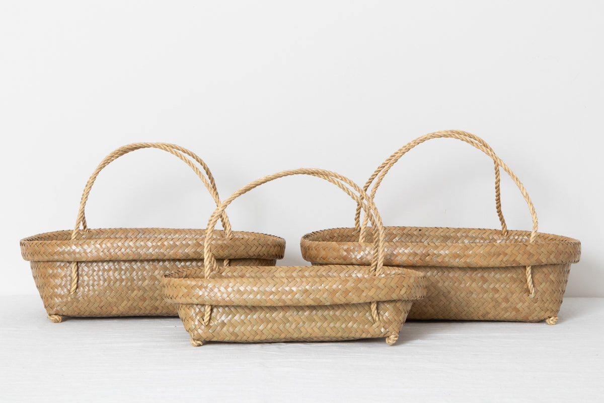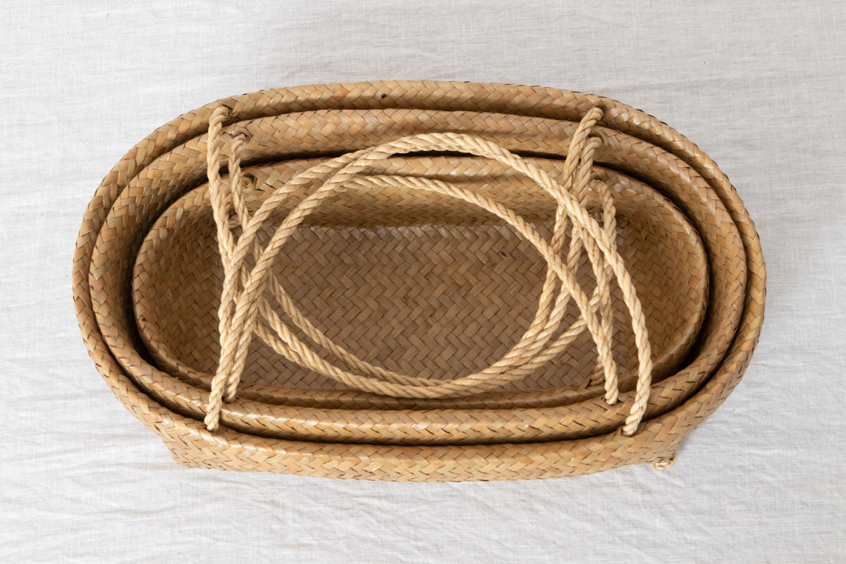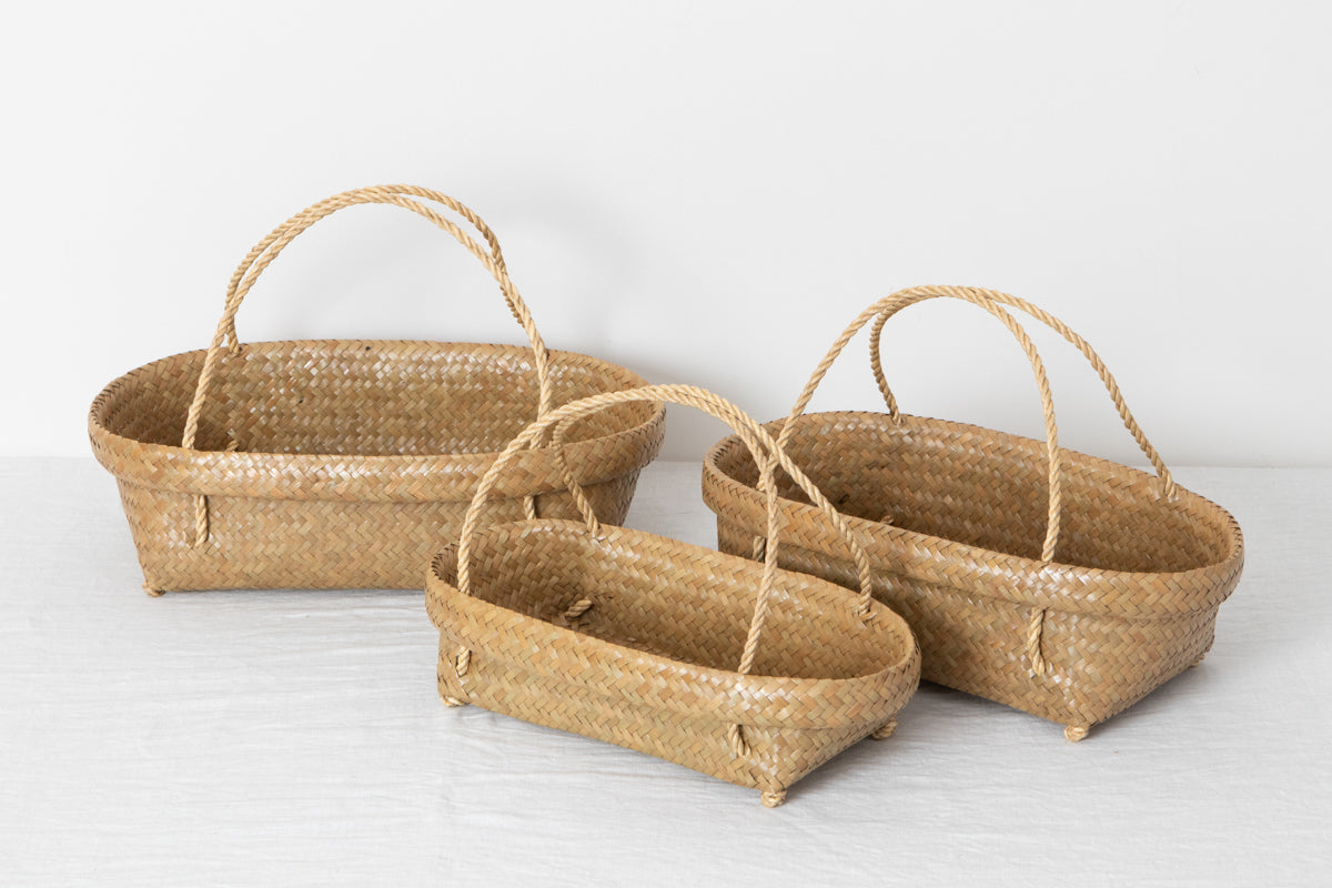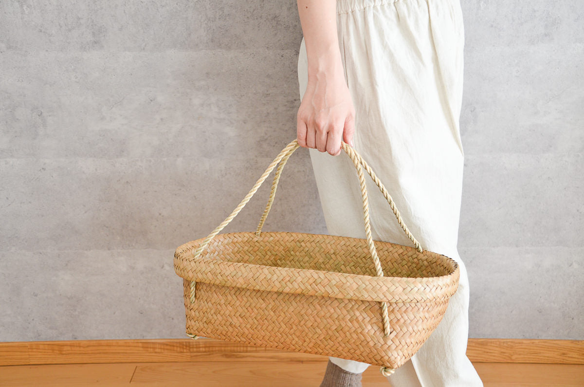若い世代の編み手が少ないながらも、今、改めてタイ国内でも、こうした自然素材製品の良さが見直され、若い人たちがかごを手に取るようになってきているとのこと。
