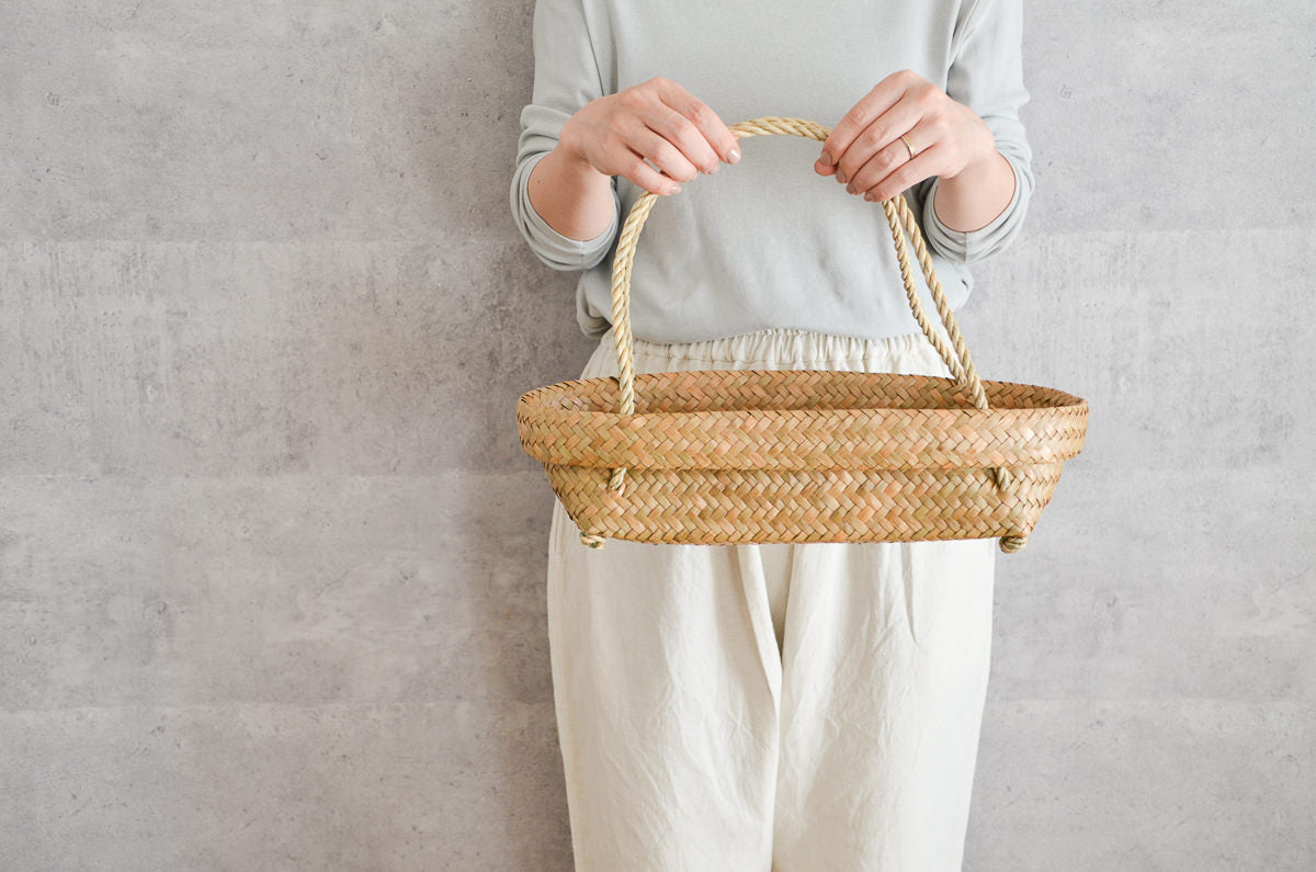こちらのページでは、「カチュー」製、取手付きの楕円型整理かご