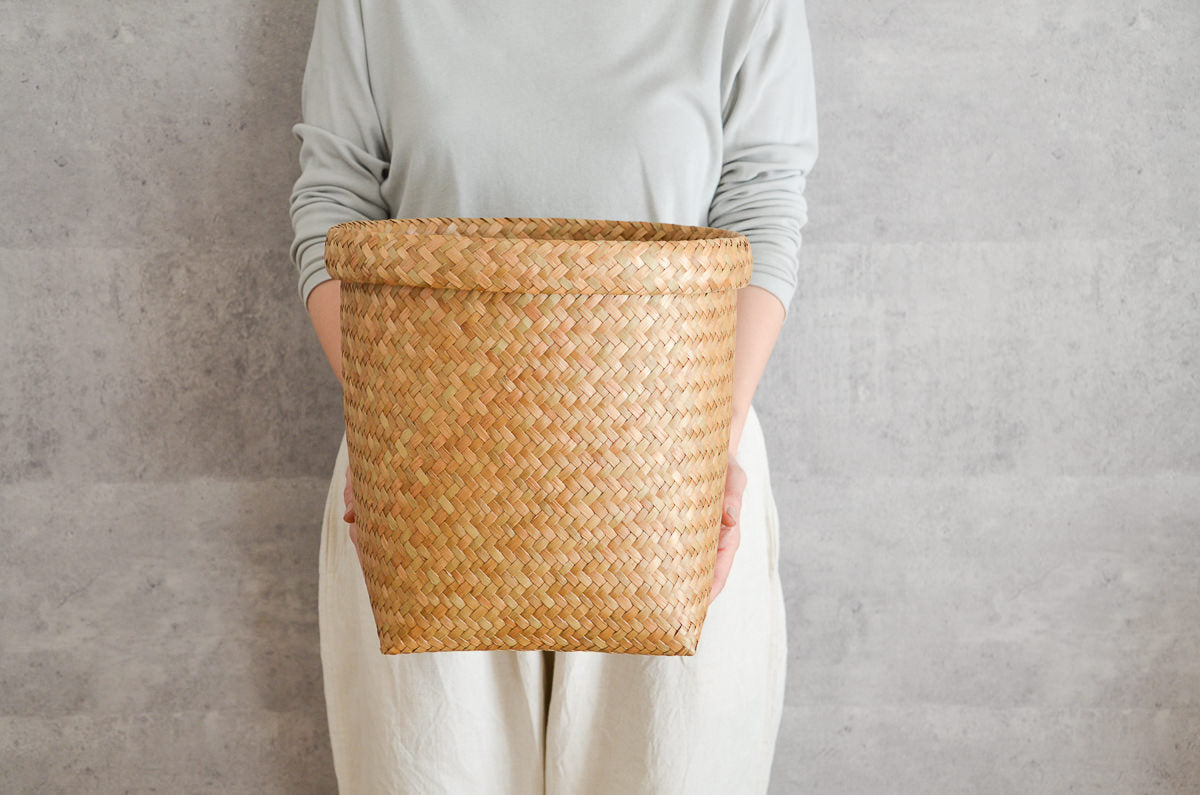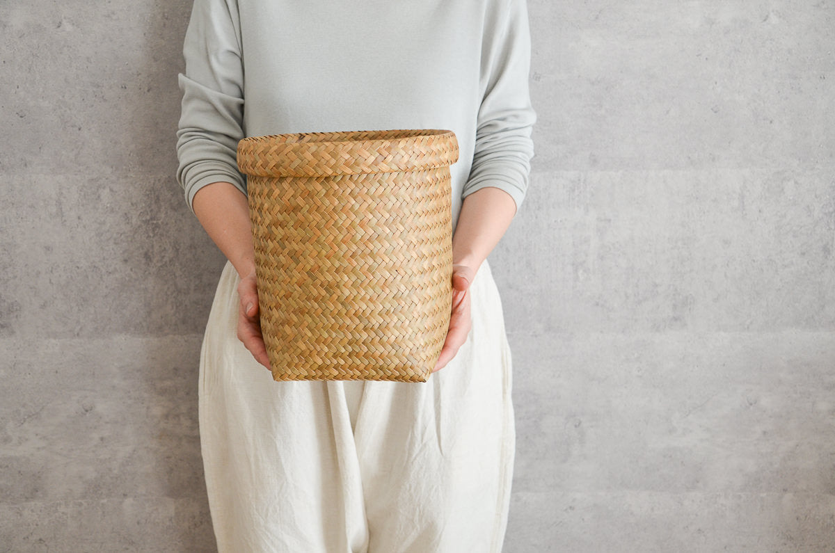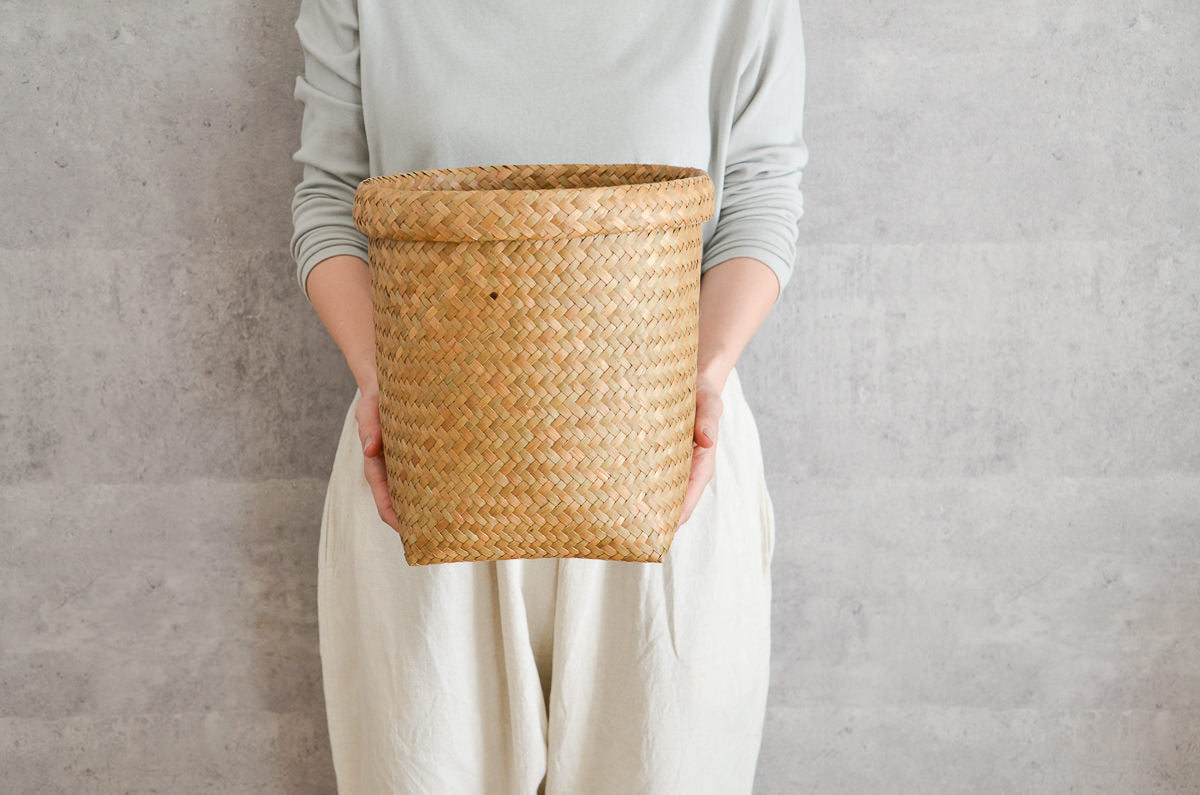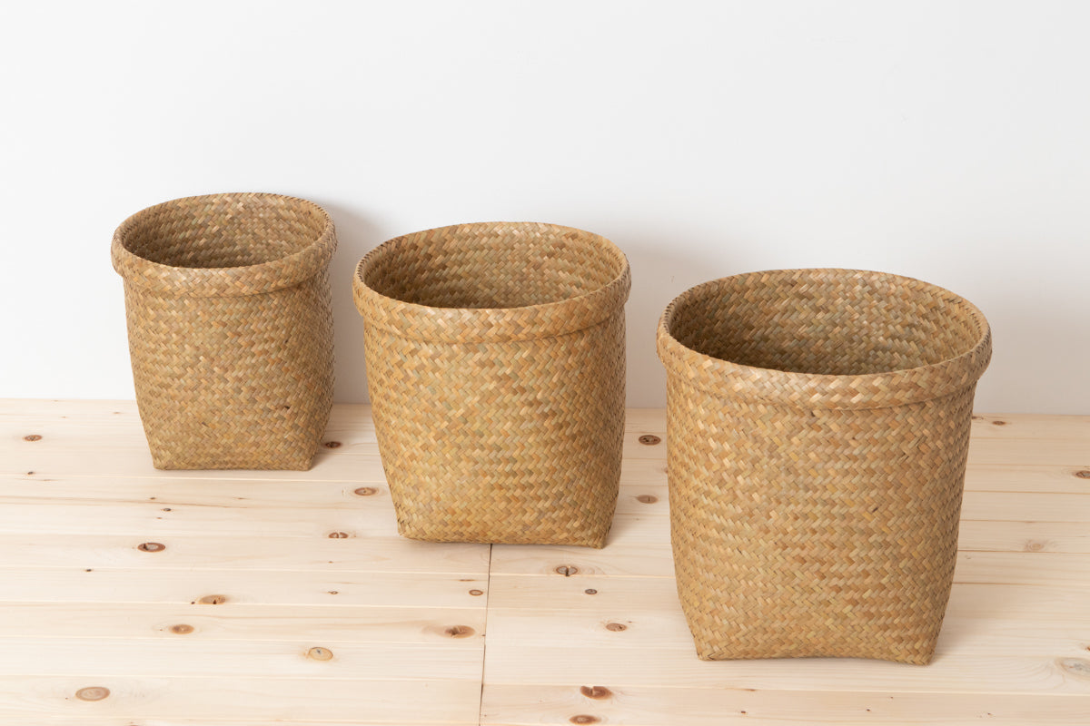 こちらのページでは、「カチュー」製、背の高い筒形のかご、「S、M、L」3サイズをご紹介します。